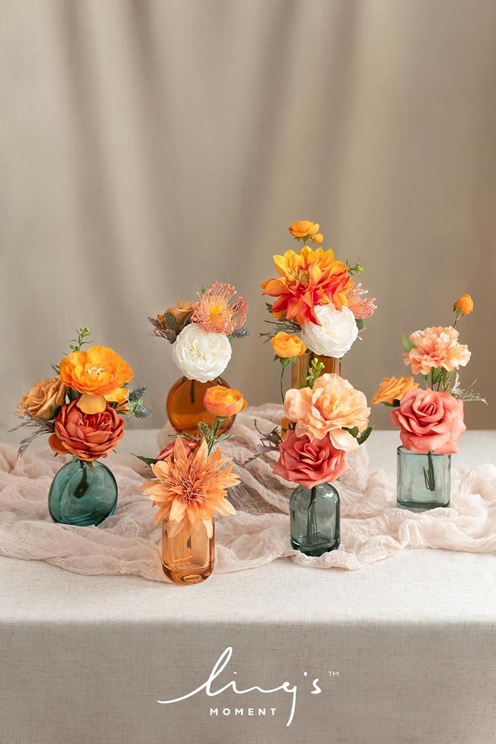 Ling’s moment Fake Flowers Box, Faux Artificial Greenery Stems Foam Roses Silk Fabic Flower for Centerpieces Bouquet Wedding Table Floral Arrangements Bridal Shower Party, Tawny Beige, Deluxe Combo(Teal & Burnt Orange)