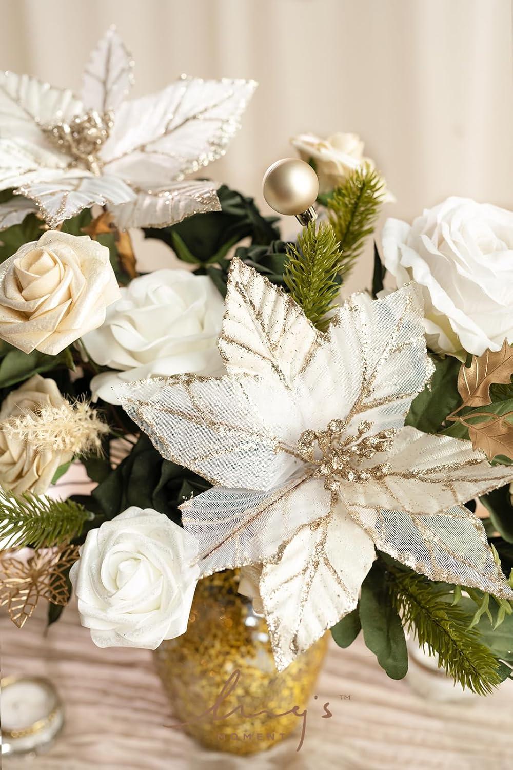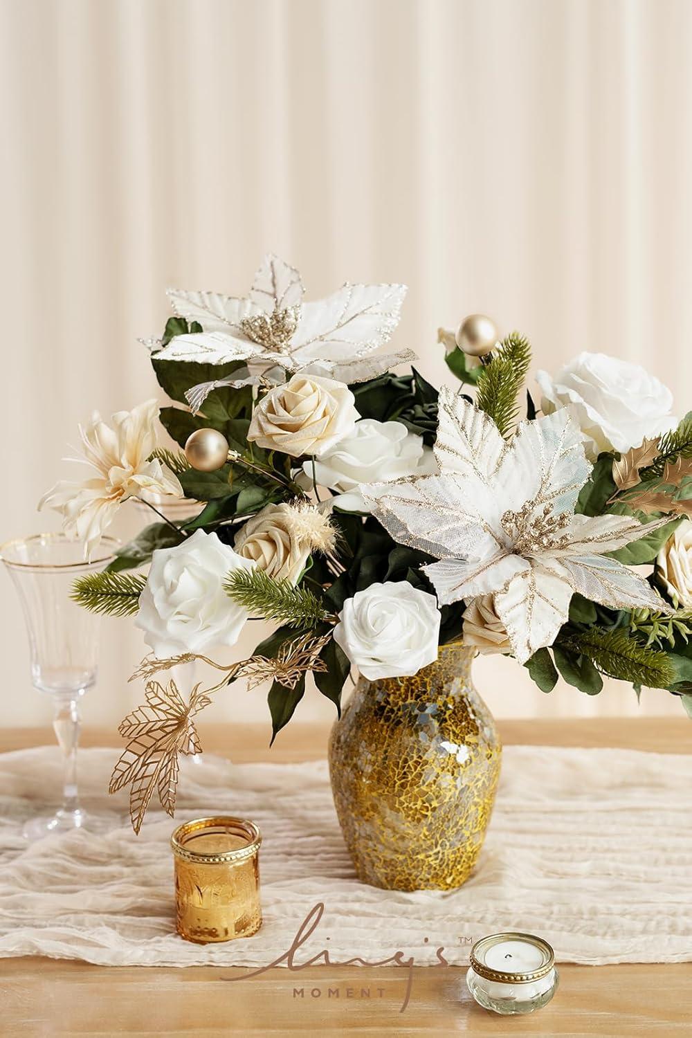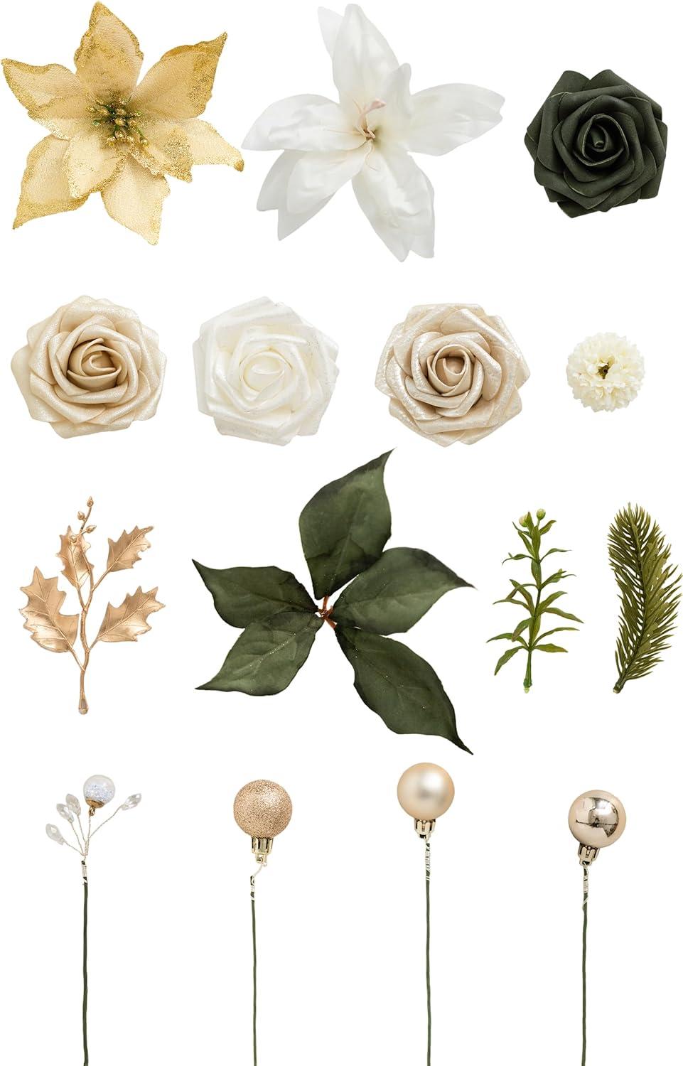 Ling’s moment Fake Flowers Box, Faux Artificial Greenery Stems Foam Roses Silk Leaves for Centerpieces Bouquet Wedding Floral Arrangements Bridal Shower Party, Lavender & Cream, Deluxe Combo(Grn-champagne Chrismas)