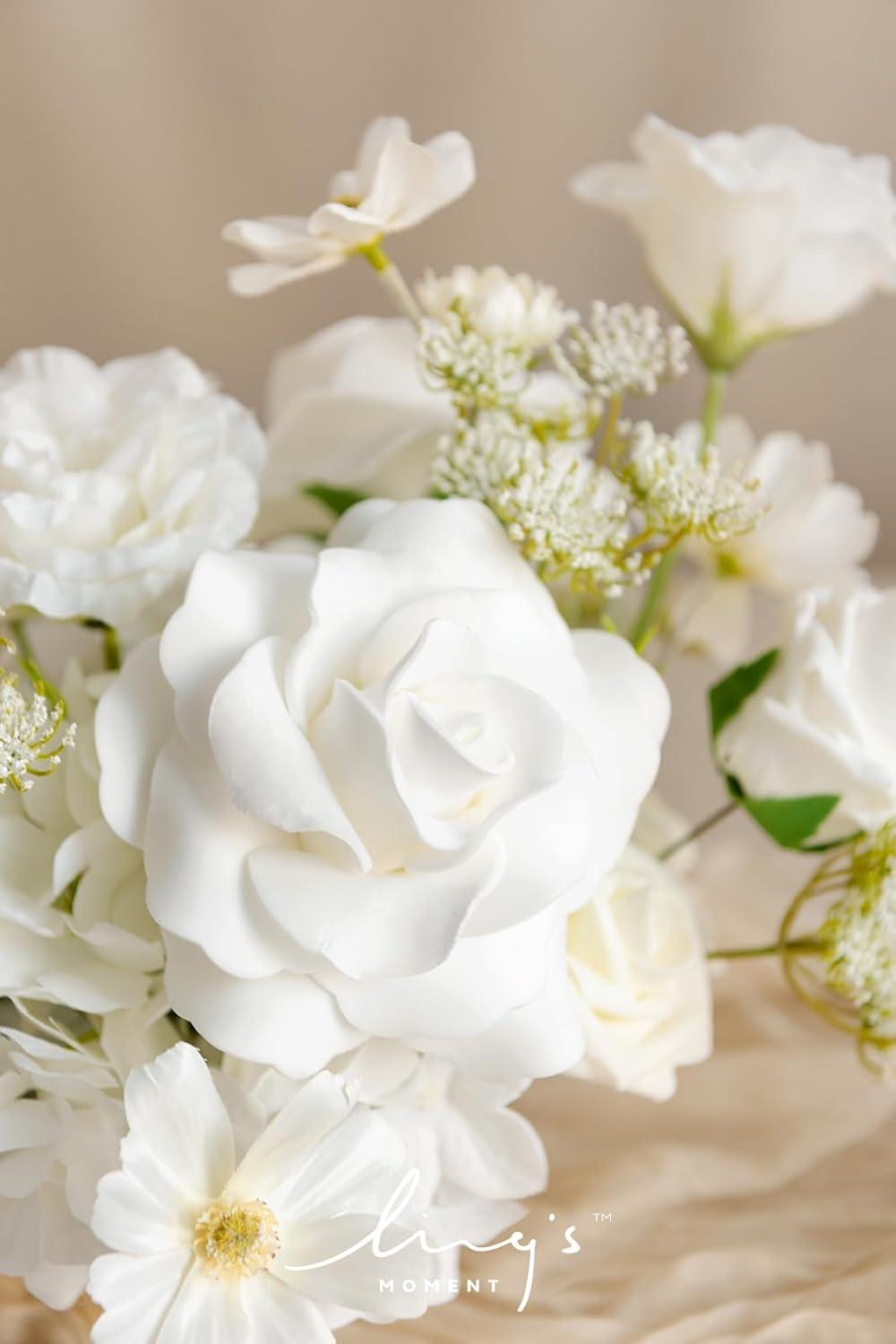 Ling’s moment Fake Flowers Box, Faux Artificial Greenery Stems Foam Roses Silk Leaves for Centerpieces Bouquet Wedding Floral Arrangements Bridal Shower Party, Lavender & Cream, Deluxe Combo(Wht-white & Cream)