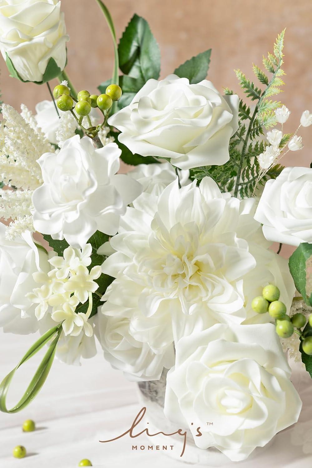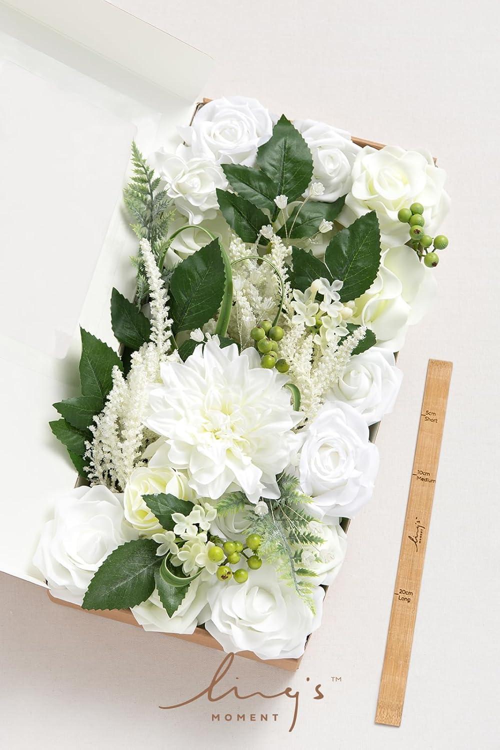 Ling’s moment Fake Flowers Box, Faux Artificial Greenery Stems Foam Roses Silk Leaves for Centerpieces Bouquet Wedding Floral Arrangements Bridal Shower Party, Lavender & Cream, Deluxe Combo(Wht-white & Green)