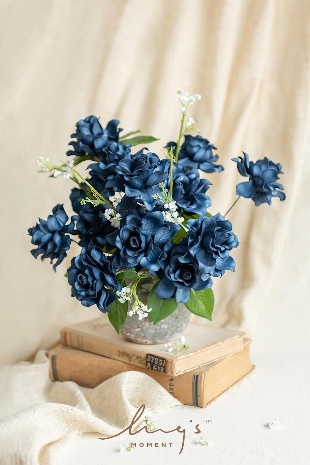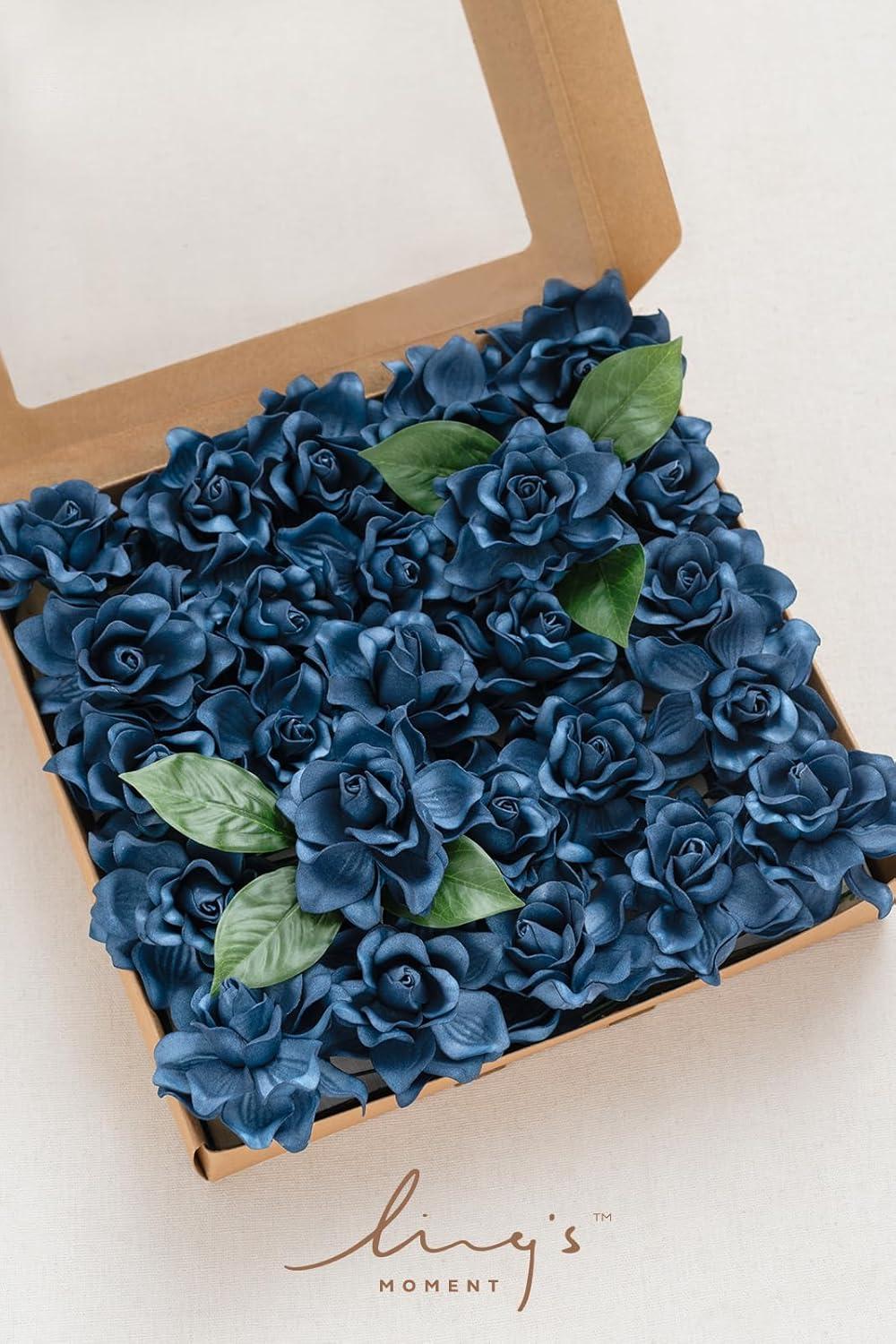 Ling’s Moment Flowers 25pcs Fake Gardenia Burnt Terra Rust Artificial Flowers w/Stems, Fake Flower for DIY Wedding Decorations Centerpieces Bouquets Boutonnieres(Blu-navy Indigo)