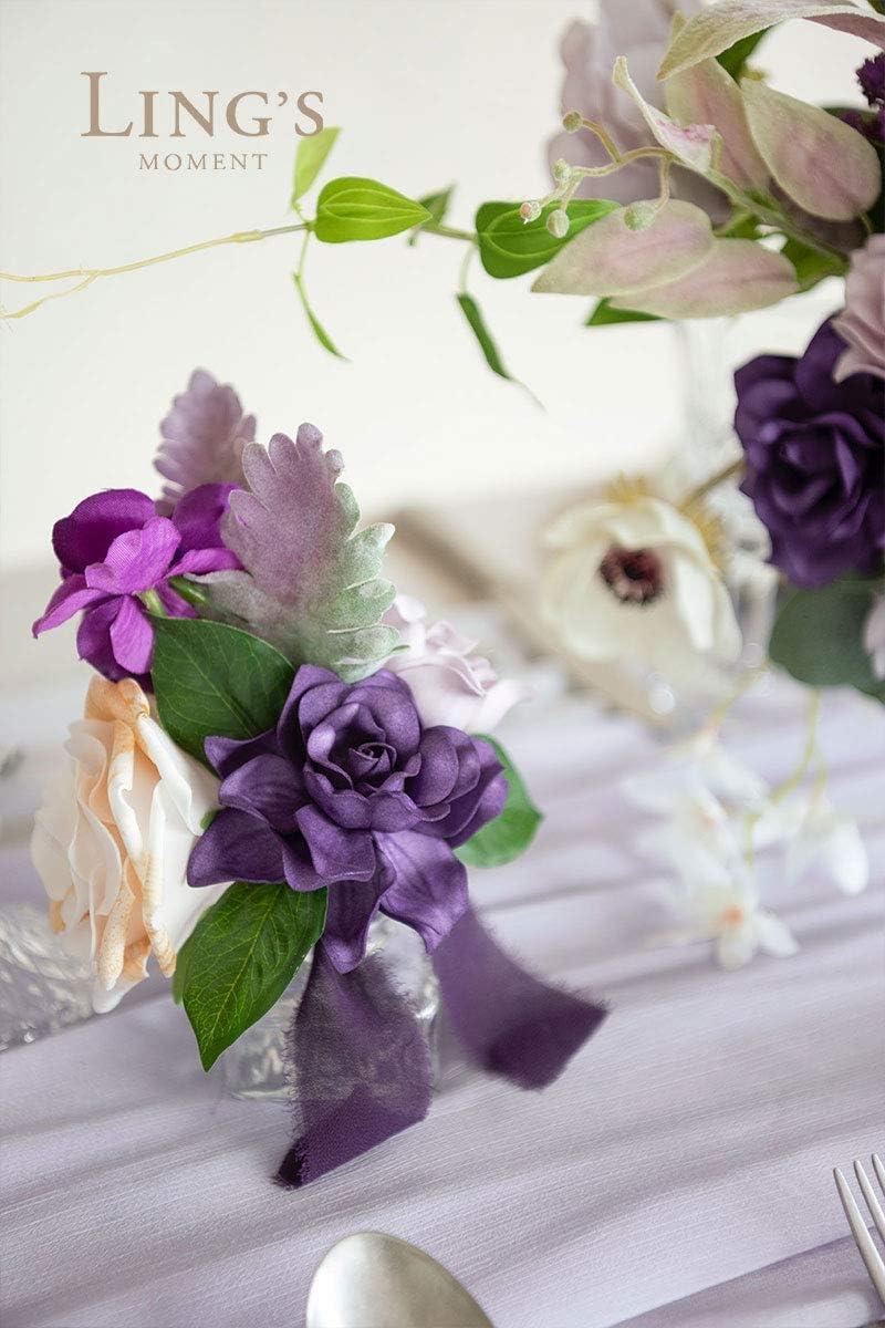 Ling's Moment Flowers 25pcs Fake Gardenia Burnt Terra Rust Artificial Flowers w/Stems, Fake Flower for DIY Wedding Decorations Centerpieces Bouquets Boutonnieres(Pur-violet Nocturne)