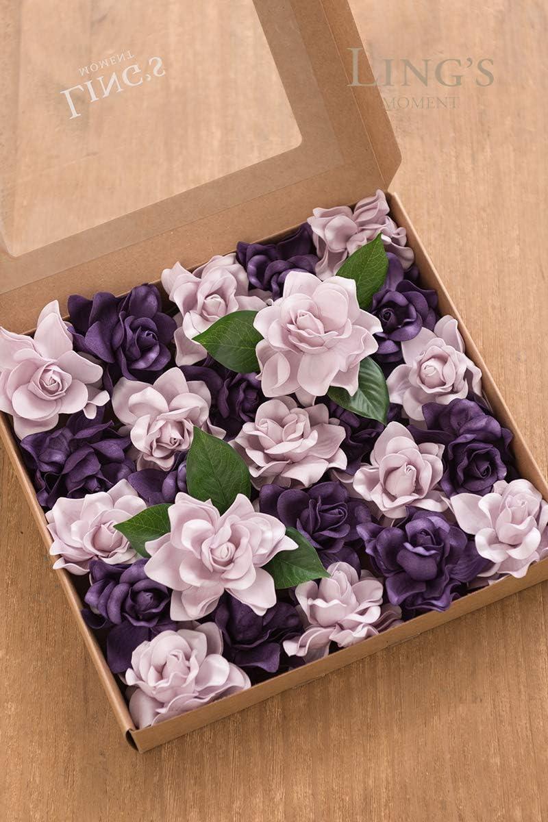 Ling’s Moment Flowers 25pcs Fake Gardenia Burnt Terra Rust Artificial Flowers w/Stems, Fake Flower for DIY Wedding Decorations Centerpieces Bouquets Boutonnieres(Pur-violet Nocturne)