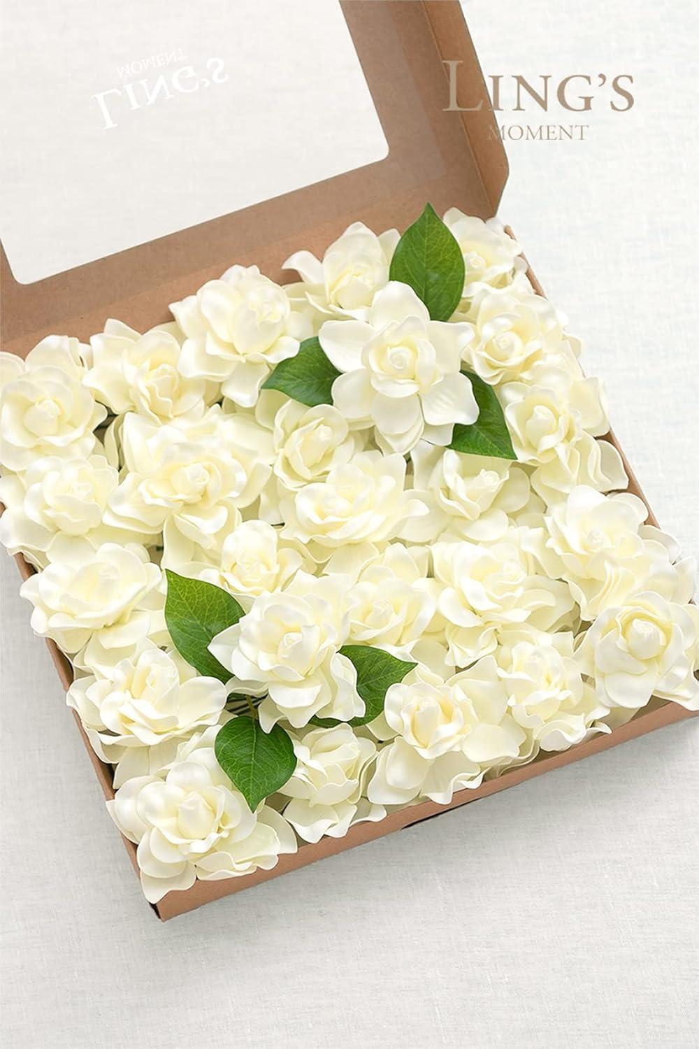 Ling’s Moment Flowers 25pcs Fake Gardenia Burnt Terra Rust Artificial Flowers w/Stems, Fake Flower for DIY Wedding Decorations Centerpieces Bouquets Boutonnieres(Wht-pure White)