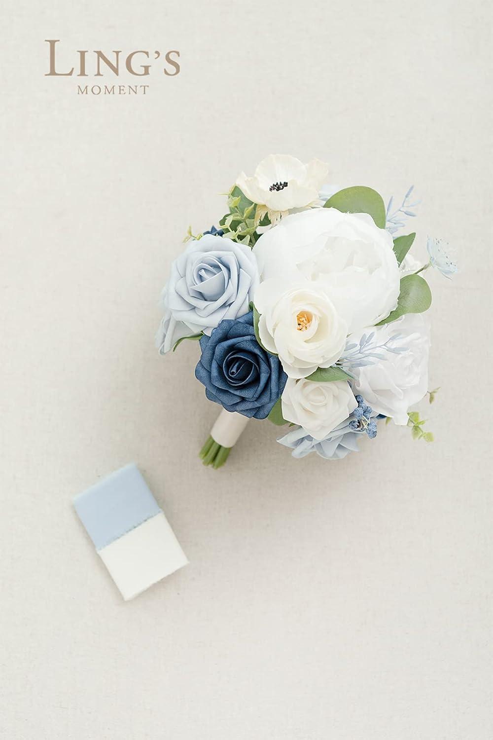Ling’s moment Gold Sparrow Bridesmaid Bouquet, Wedding Bouquets for Bridesmaids, 7 Inch Bridal Bouquets for Bridesmaids, Wedding, Ceremony, Anniversary, etc.(Blu-dusty Blue & Navy)