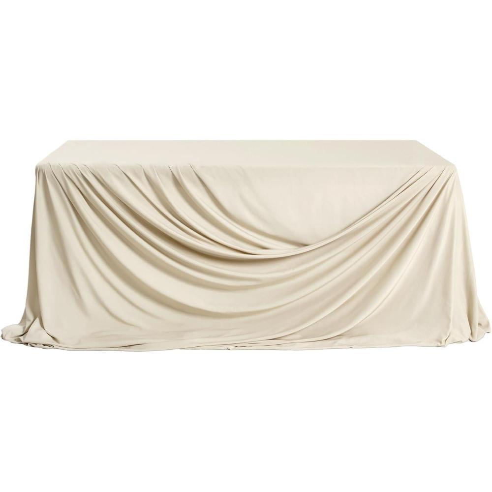 FITS: One piece of 9'x11' table cloth, perfect for a 4ft or 6ft rectangle head table with the entire dropping to the floor (It's a 6ft table in pictures).