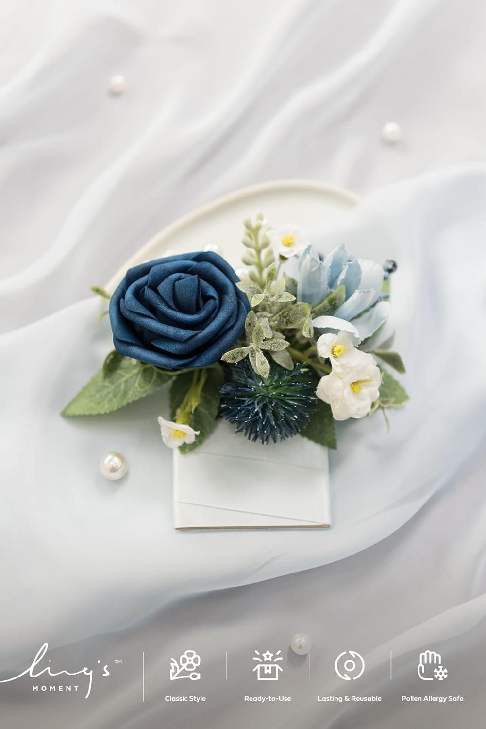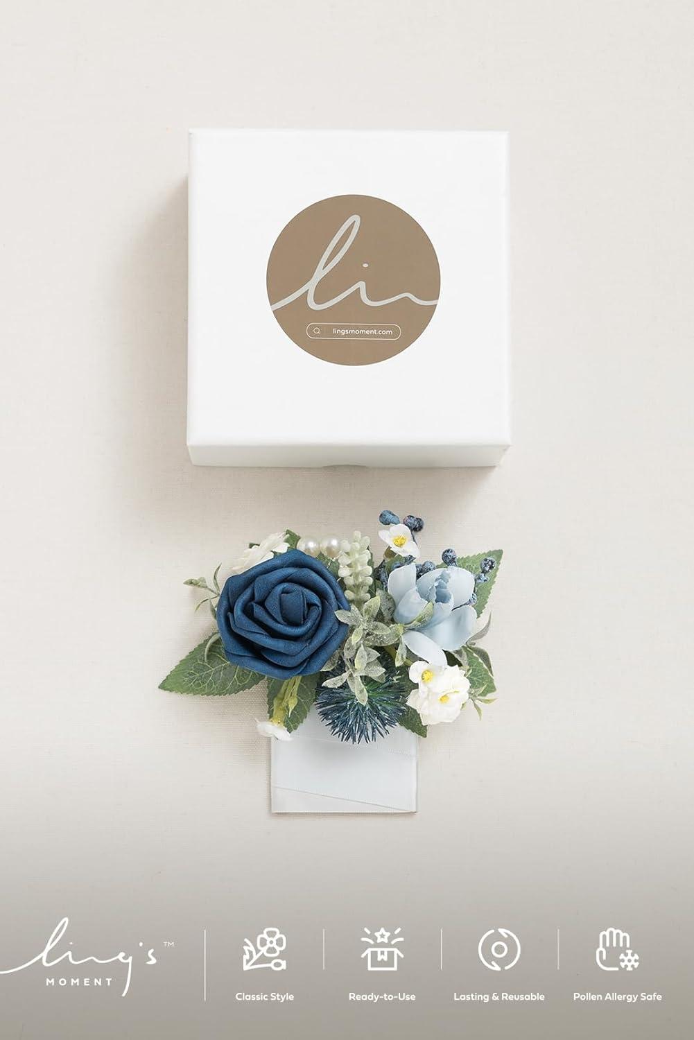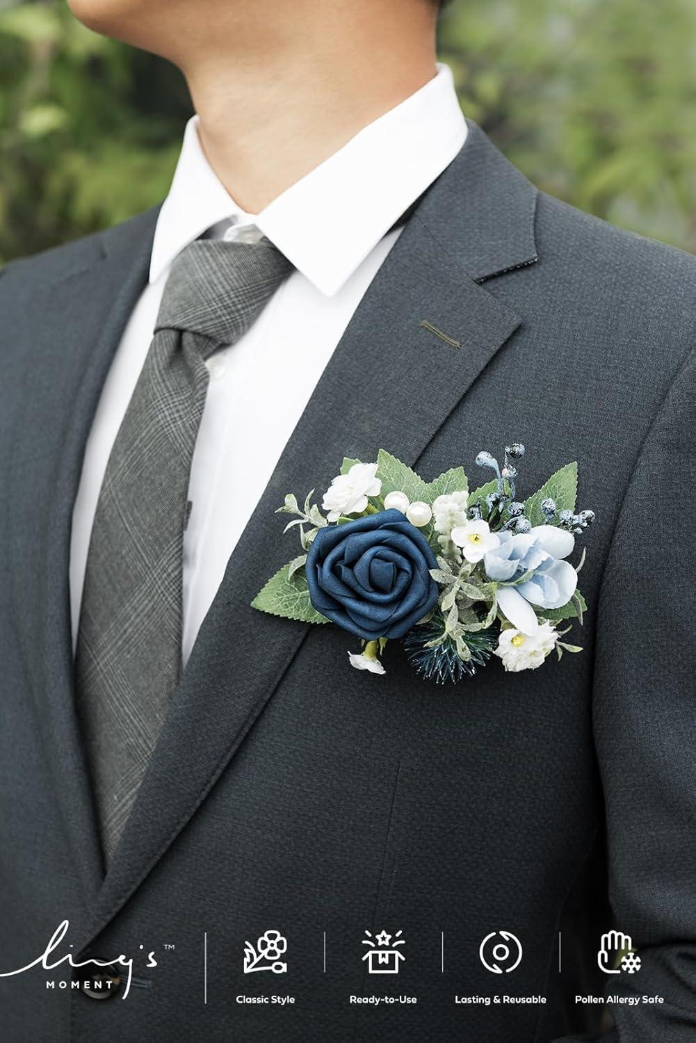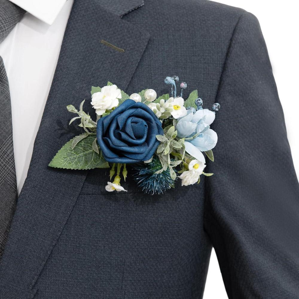 Ling’s moment Pocket Boutonniere Single, Boutonniere for Men Groom for Wedding, Prom, Homecoming, Anniversary, Graduation, etc.Dusty Blue(Blu-dusty Blue & Navy)