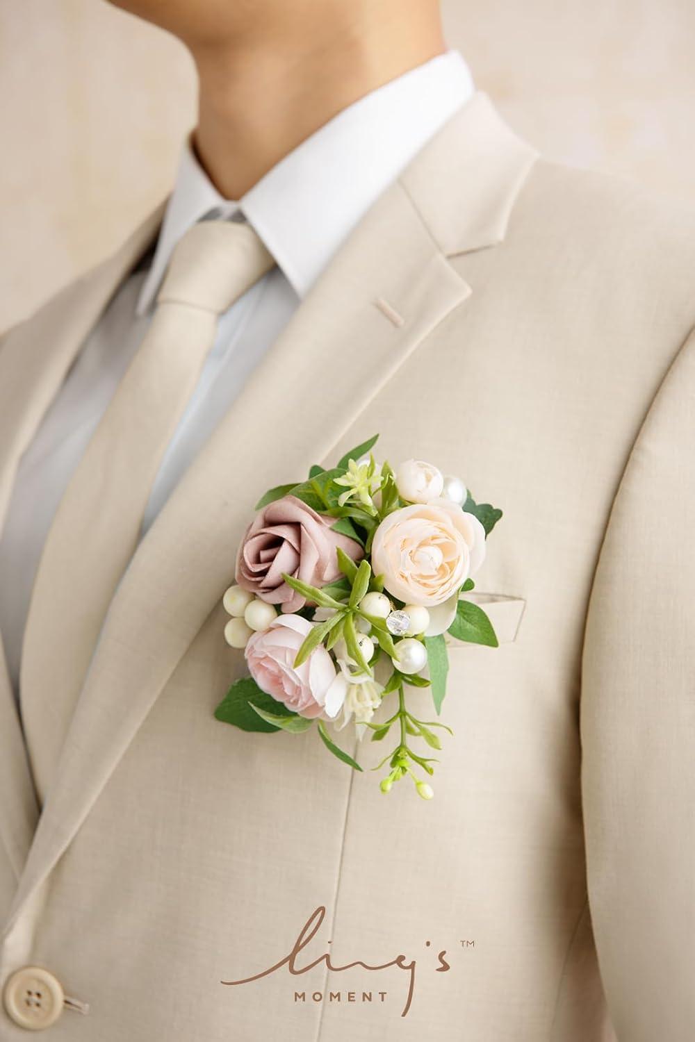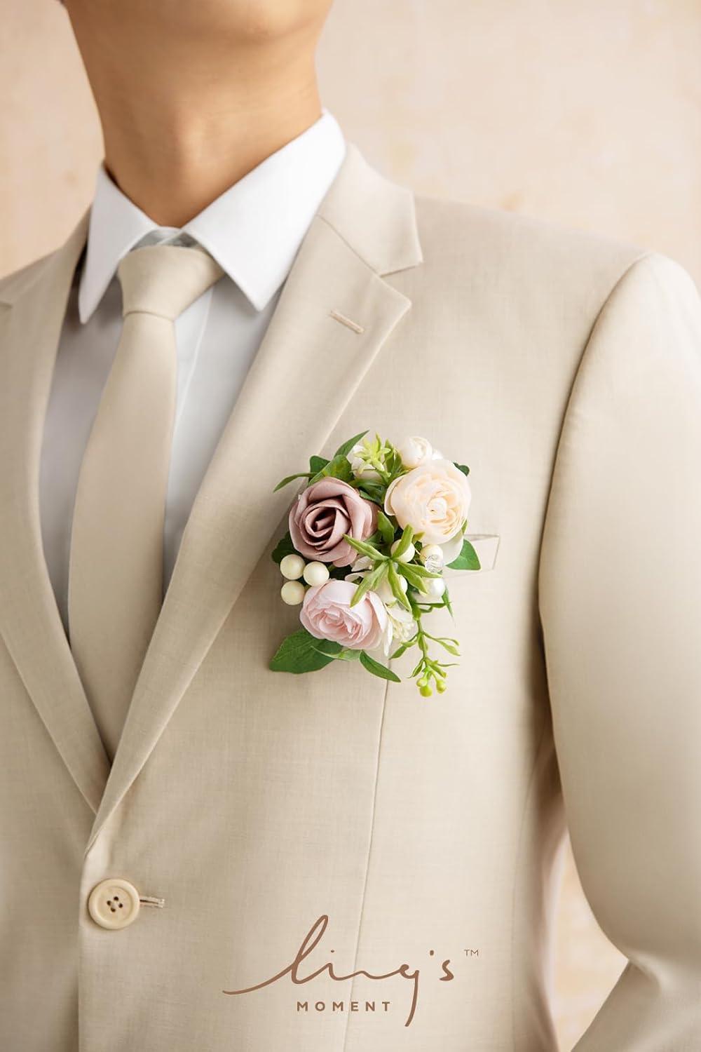 imageLings moment Pocket Boutonniere Single Boutonniere for Men Groom for Wedding Prom Homecoming Anniversary Graduation etcDusty BluePkglowing Cream  Blush