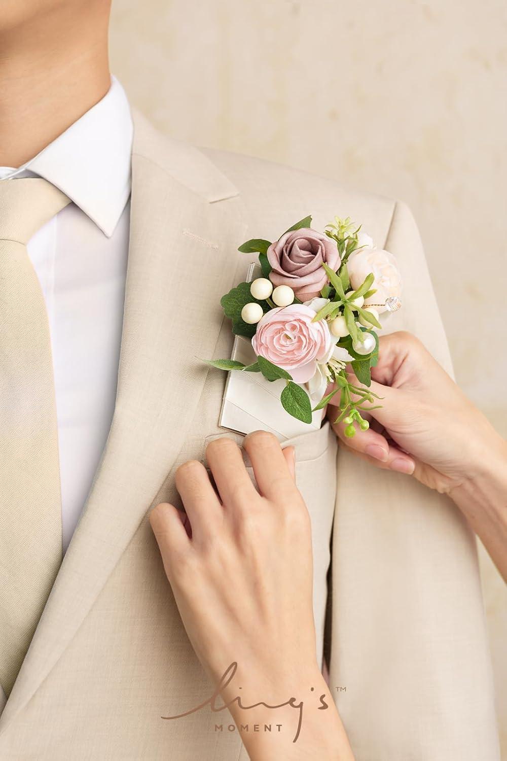 Ling's moment Pocket Boutonniere Single, Boutonniere for Men Groom for Wedding, Prom, Homecoming, Anniversary, Graduation, etc.Dusty Blue(Pk-dusty Rose Ranunculus)