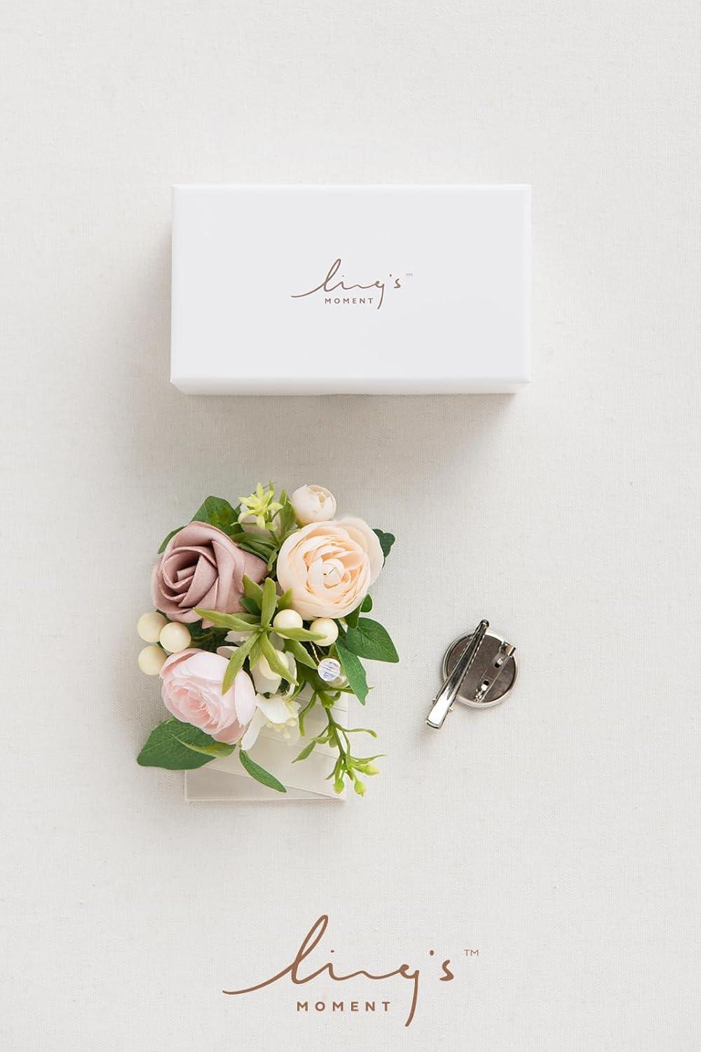 Ling’s moment Pocket Boutonniere Single, Boutonniere for Men Groom for Wedding, Prom, Homecoming, Anniversary, Graduation, etc.Dusty Blue(Pk-glowing Cream & Blush)