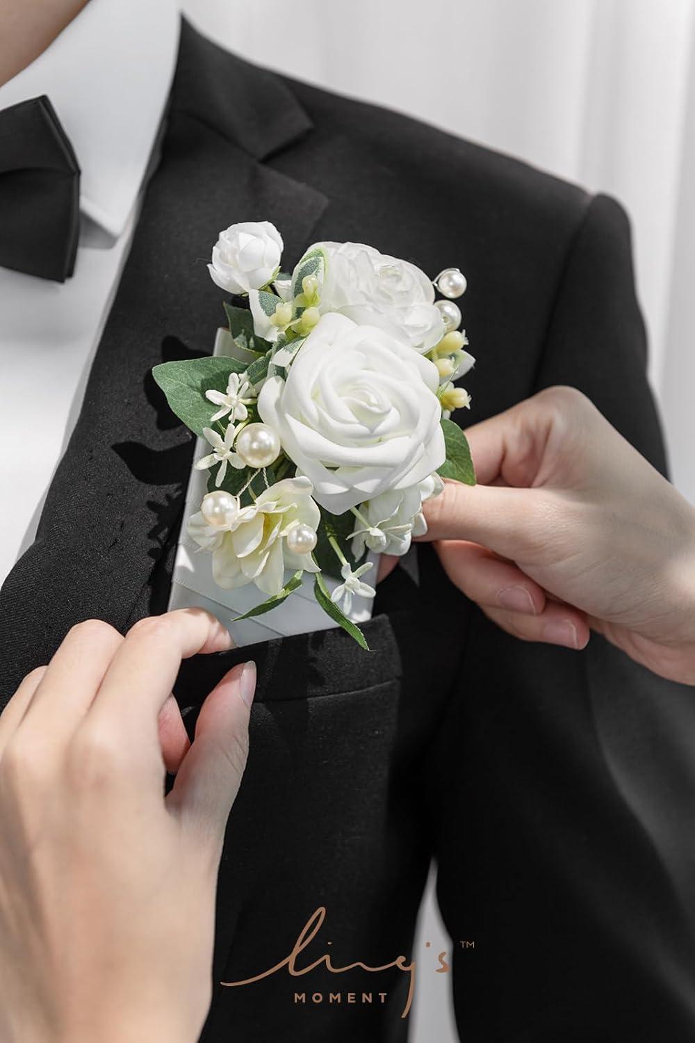 【Great Design】 A luxurious boutonniere designed for the groom. The unique design is convenient for the groom to wear and also allows him to stand out among the groomsmen.