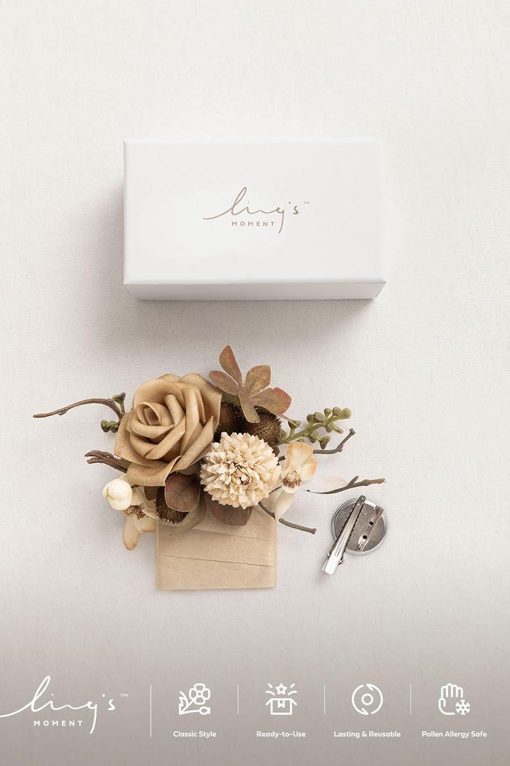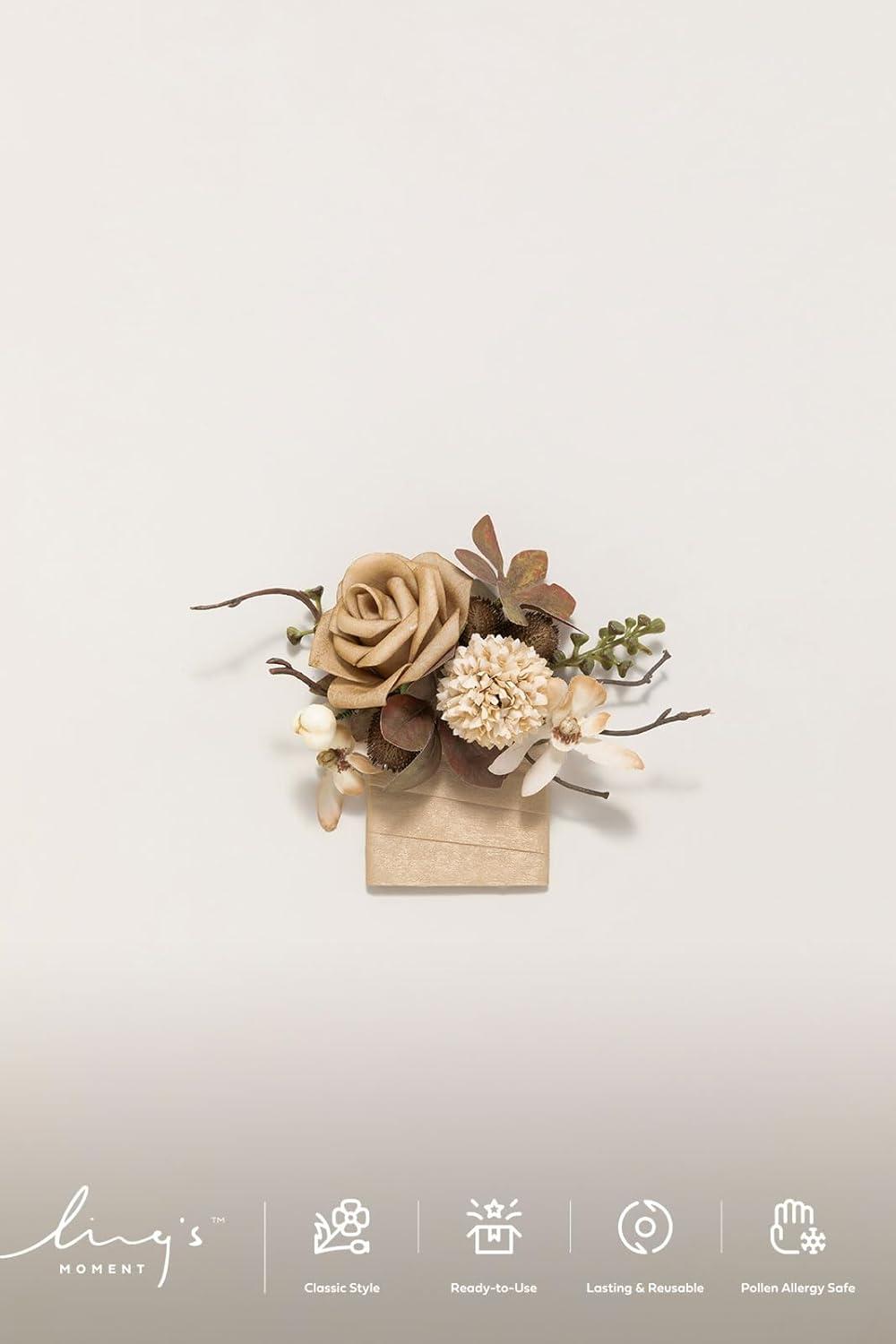 Ling's moment Pocket Boutonniere Single, Boutonniere for Men Groom for Wedding, Prom, Homecoming, Anniversary, Graduation, etc.Sand Beige Gold Sparrow(Brn-sand Beige & Gold Sparrow)