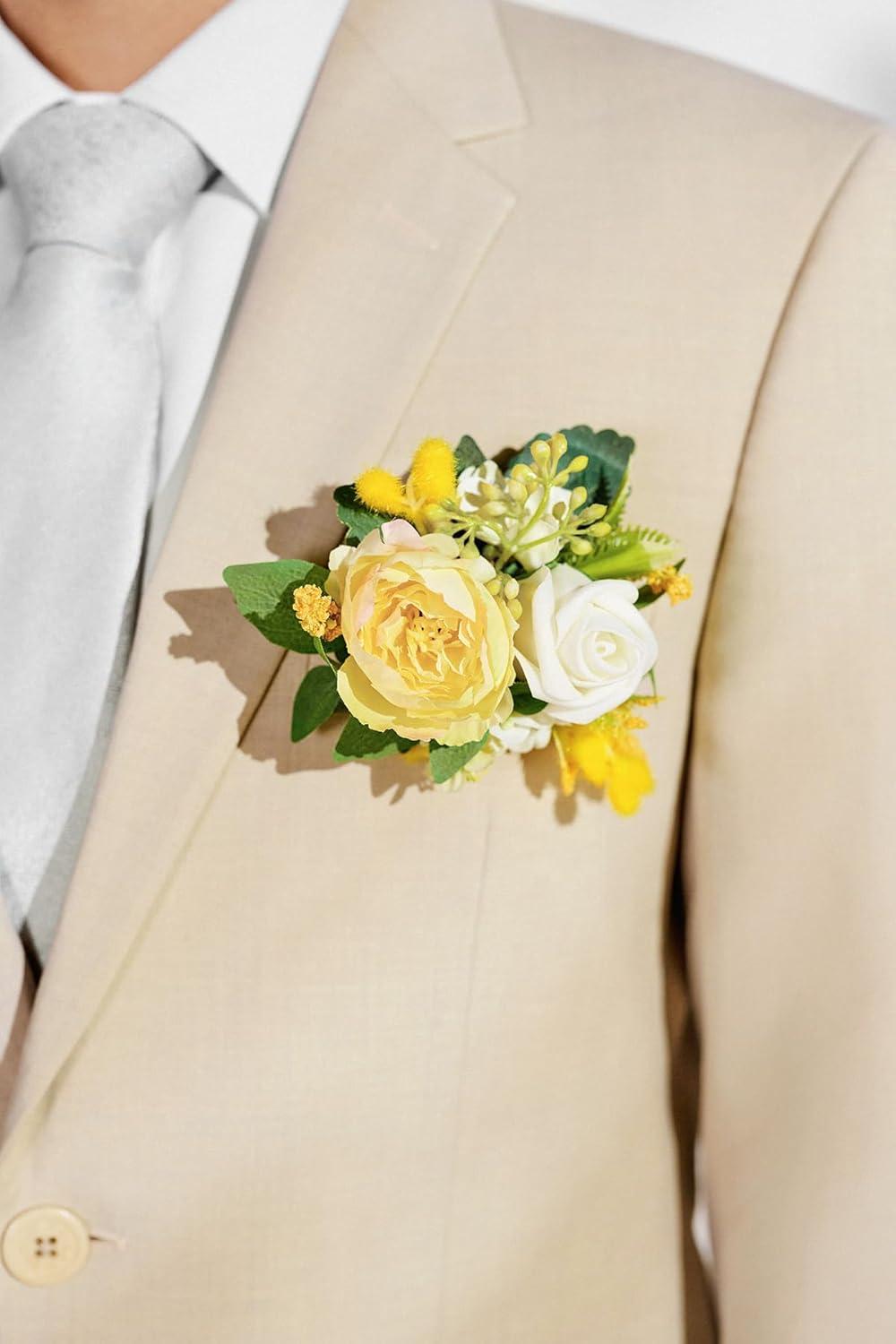 Ling’s moment Pocket Boutonniere Single, Boutonniere for Men Groom for Wedding, Prom, Homecoming, Anniversary, Graduation, etc.Sand Beige Gold Sparrow(Ylw-yellow & White)