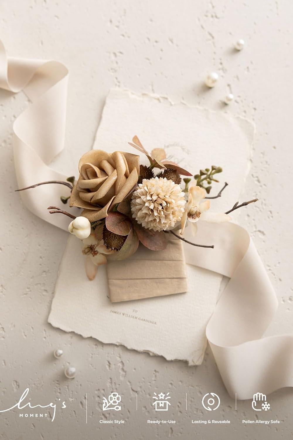 Ling’s moment Pocket Boutonniere Single, Boutonniere for Men Groom for Wedding, Prom, Homecoming, Anniversary, Graduation, etc.Tawny Beige White Orchid, 6″ W x 5″ H(Brn-tawny Beige & White Orchid)