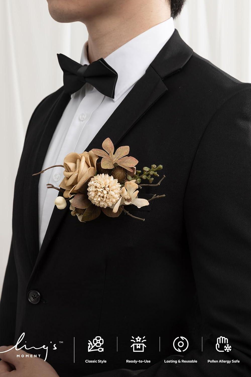 imageLings moment Pocket Boutonniere Single Boutonniere for Men Groom for Wedding Prom Homecoming Anniversary Graduation etcTawny Beige White Orchid 6quot W x 5quot HBrntawny Beige  White Orchid