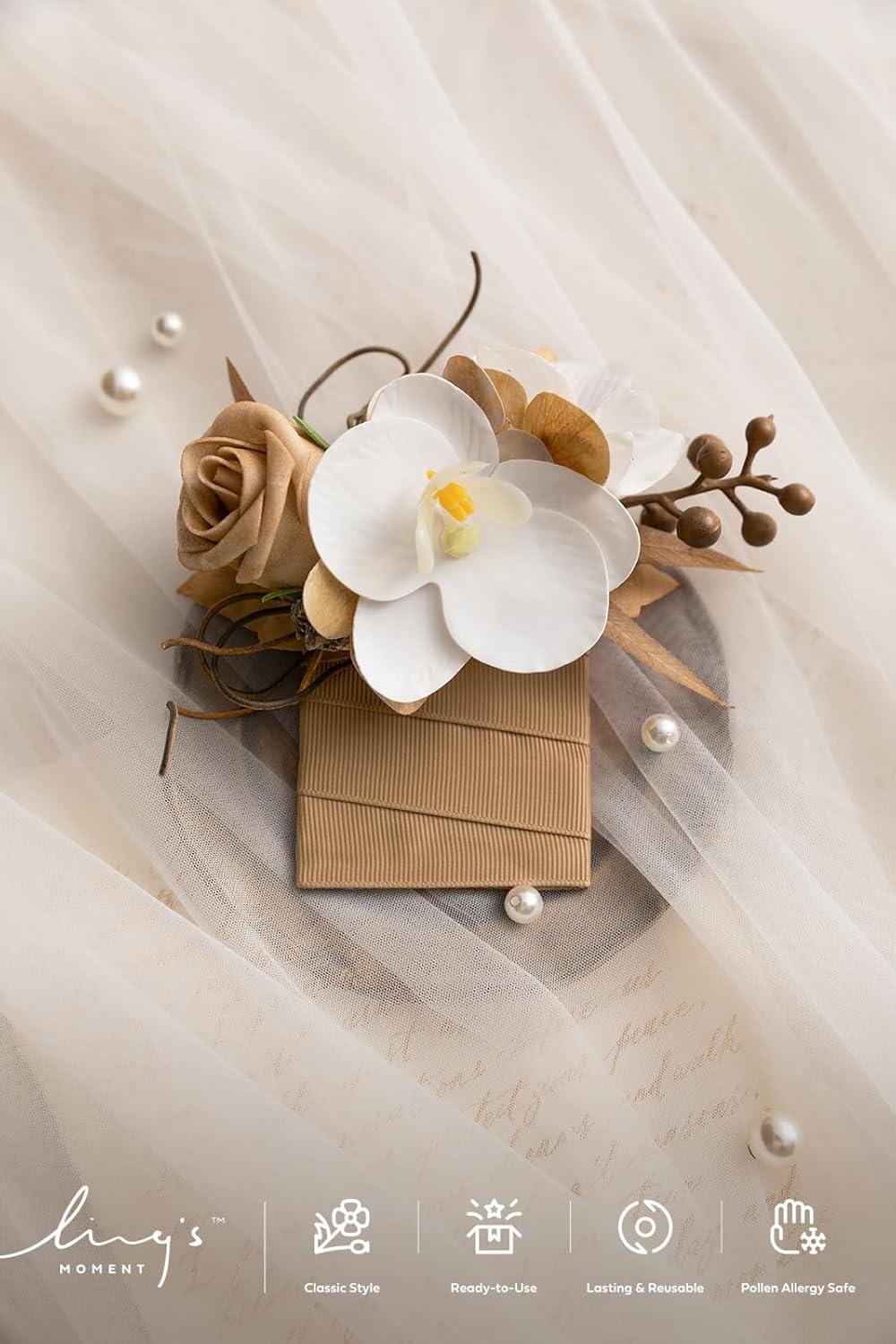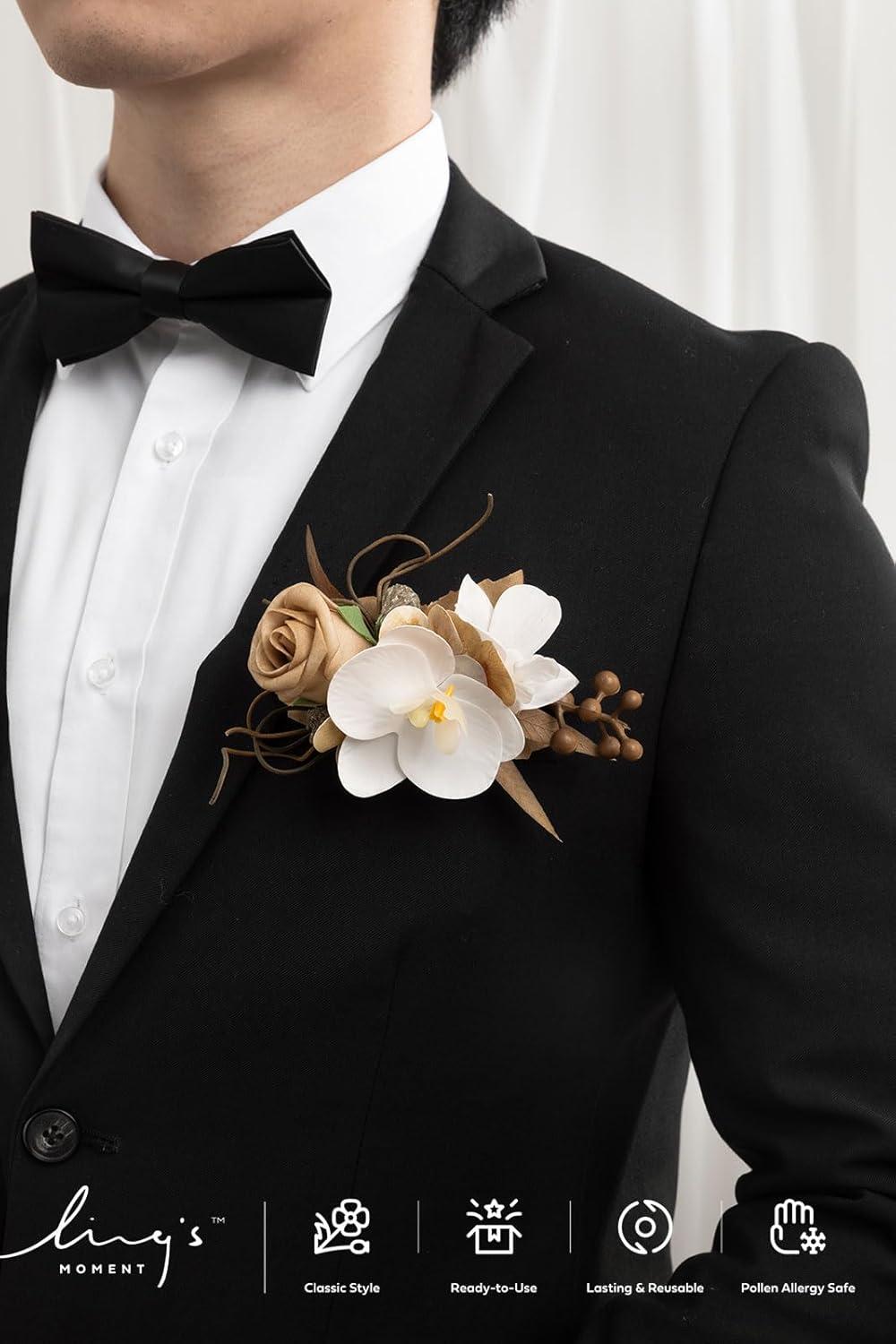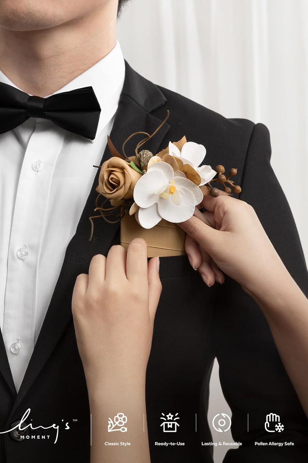 【Great Design】 A luxurious boutonniere designed for the groom. The unique design is convenient for the groom to wear and also allows him to stand out among the groomsmen.