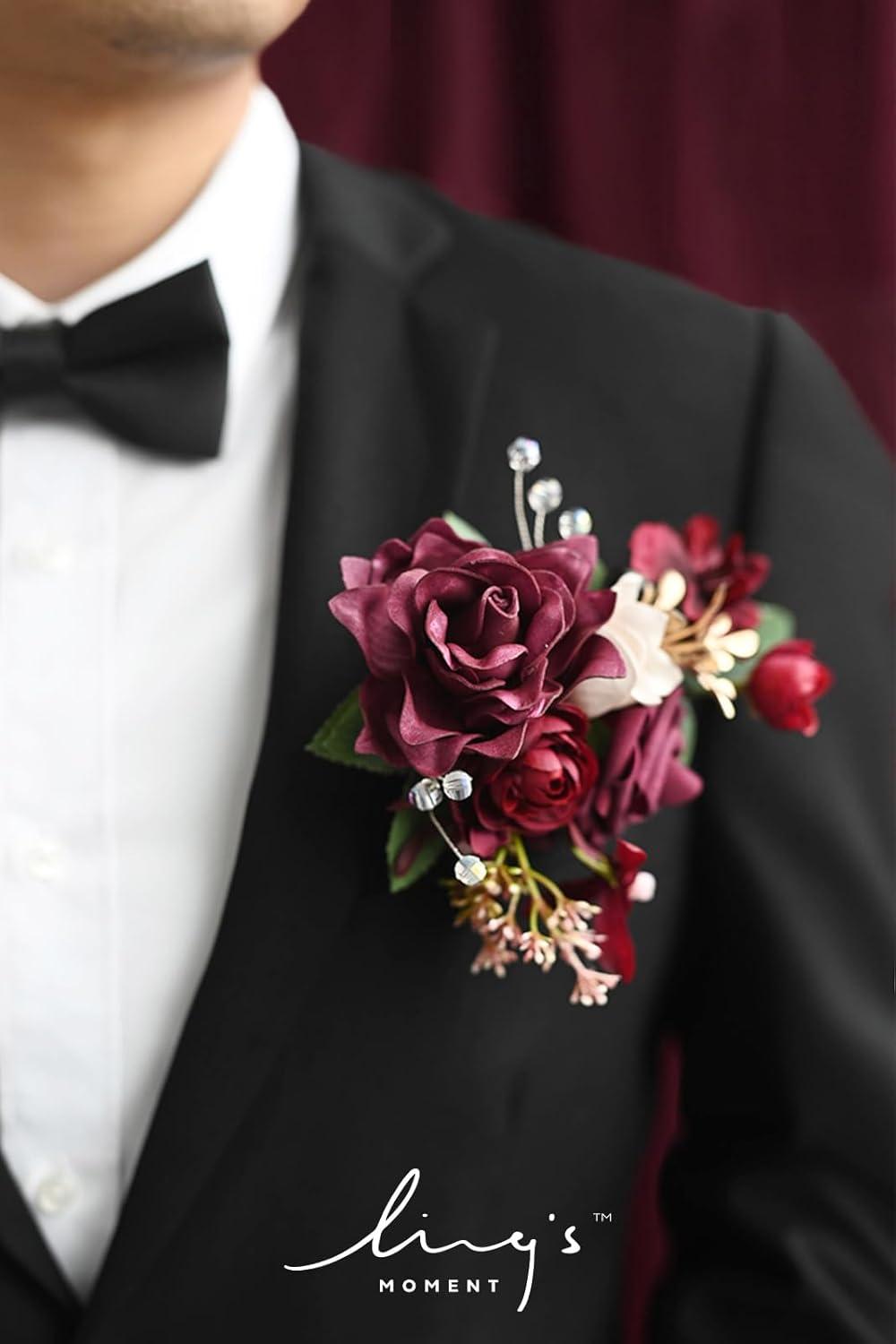 【Great Design】 A luxurious boutonniere designed for the groom. The unique design is convenient for the groom to wear and also allows him to stand out among the groomsmen.