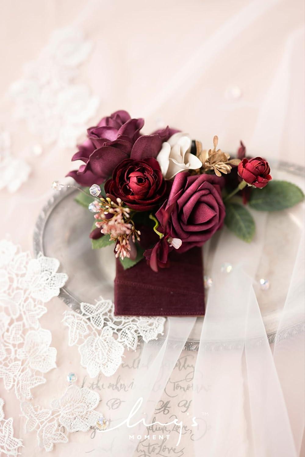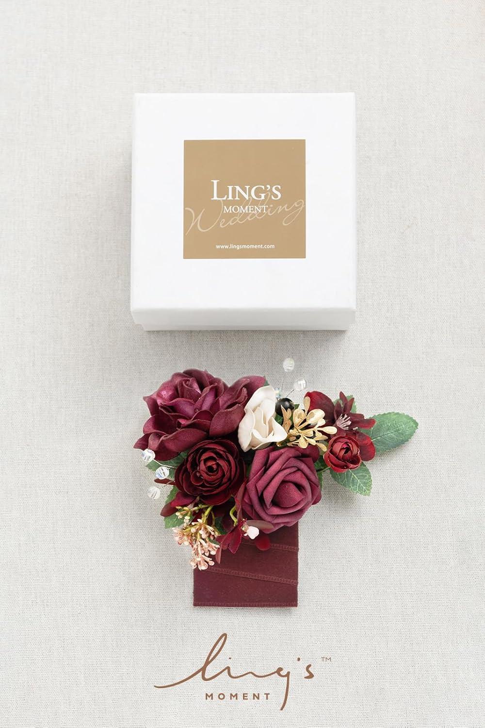 Ling’s moment Pocket Boutonniere Single, Boutonniere for Men Groom for Wedding, Prom, Homecoming, Anniversary, Graduation, etc.Tawny Beige White Orchid, 6″ W x 5″ H(Red-burgundy & Dusty Rose)