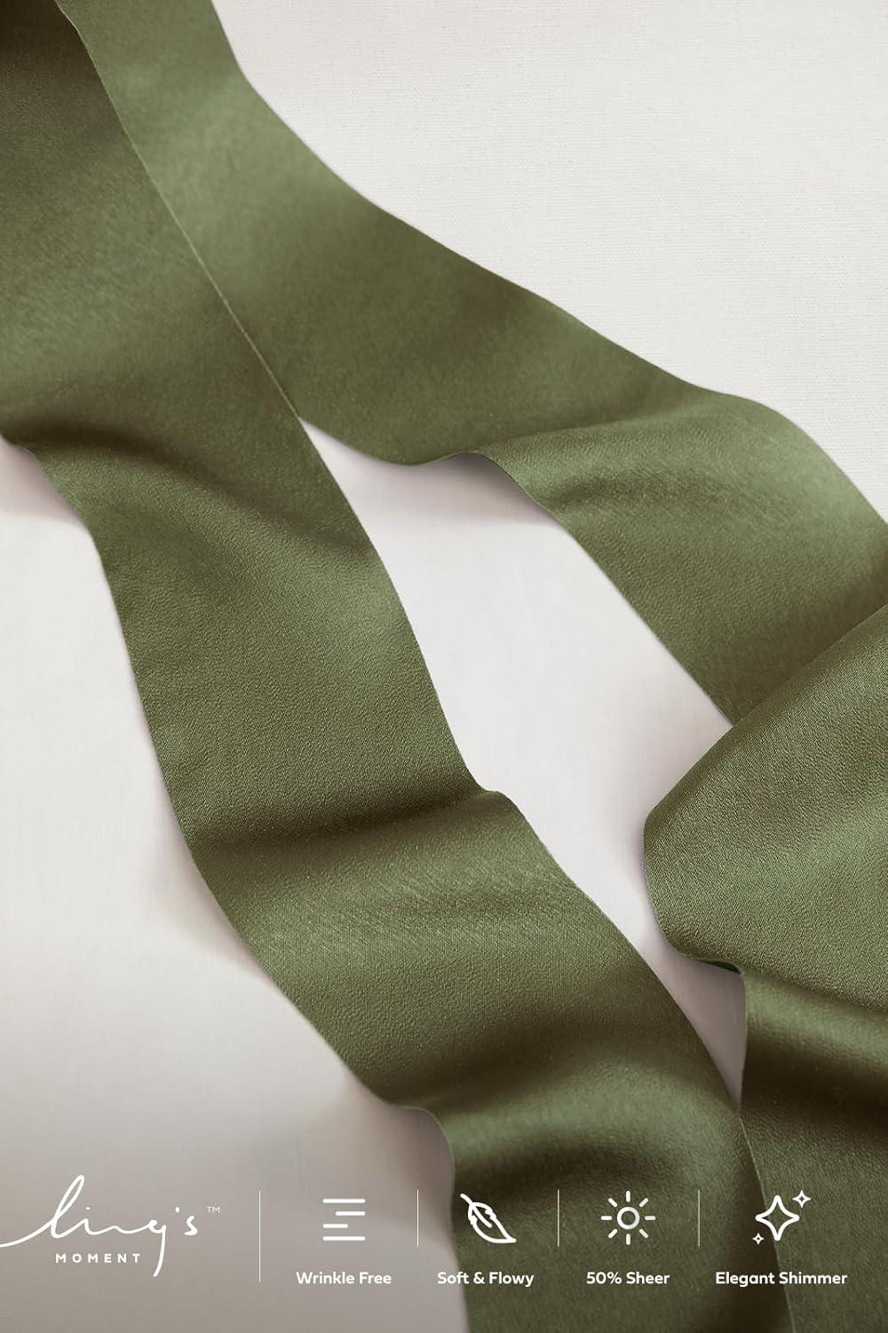 Ling’s Moment Satin Orange Ribbon, 2.6 Inch x 13Yd Burnt Orange Silk Extra Wide Thick Fabric Ribbons for Craft Gift Wrapping Flower Bouquet Wreaths Birthday Wedding Welcome Sign Decorations(Gr-Olive Green)