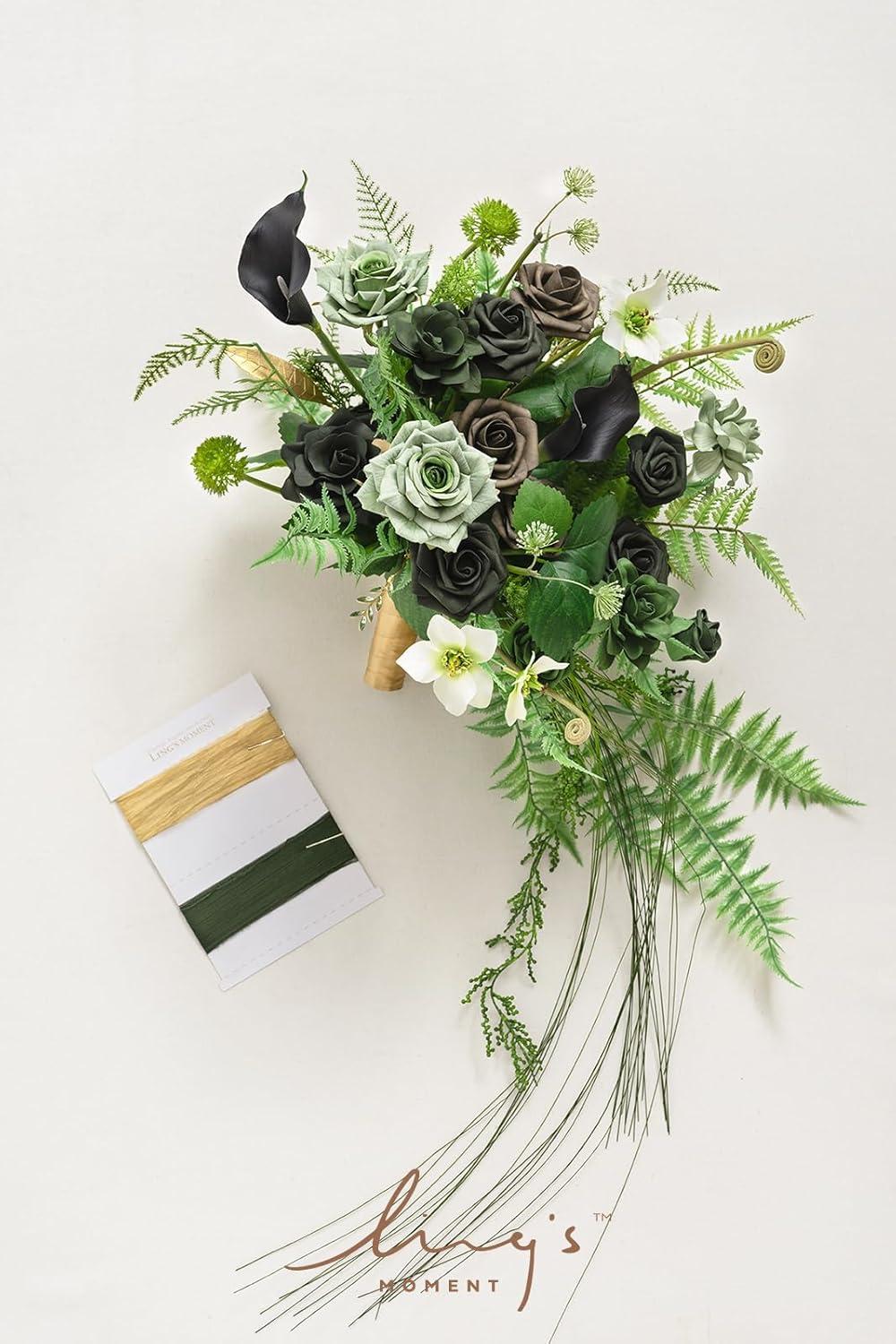 Ling’s moment Terracotta Bridal Bouquet Cascading, Burnt Orange Wedding Bouquets for Bride, 13 Inch Bride Bouquets for Wedding Artificial Flowers Bouquets(Grn-forest Green)