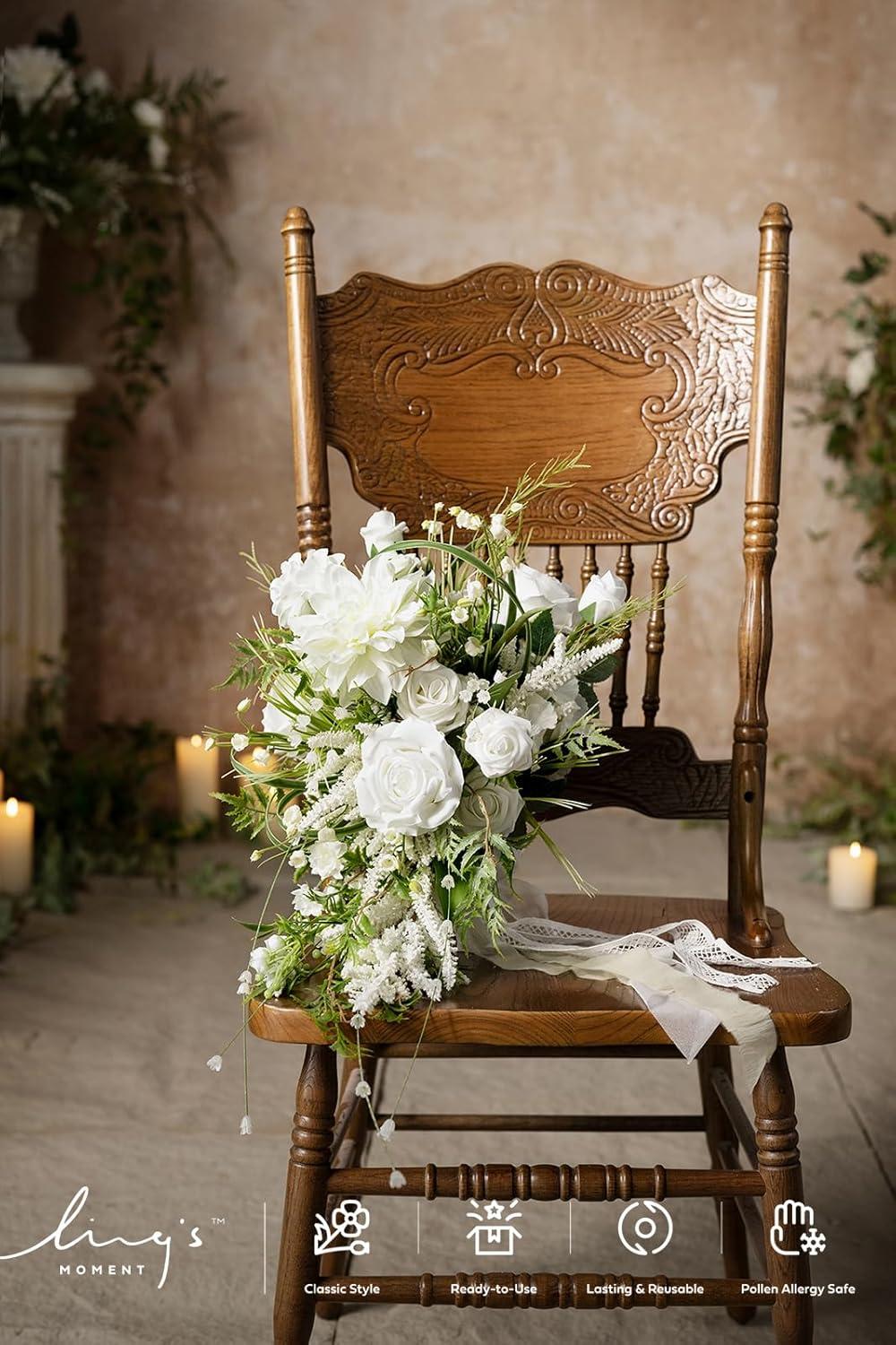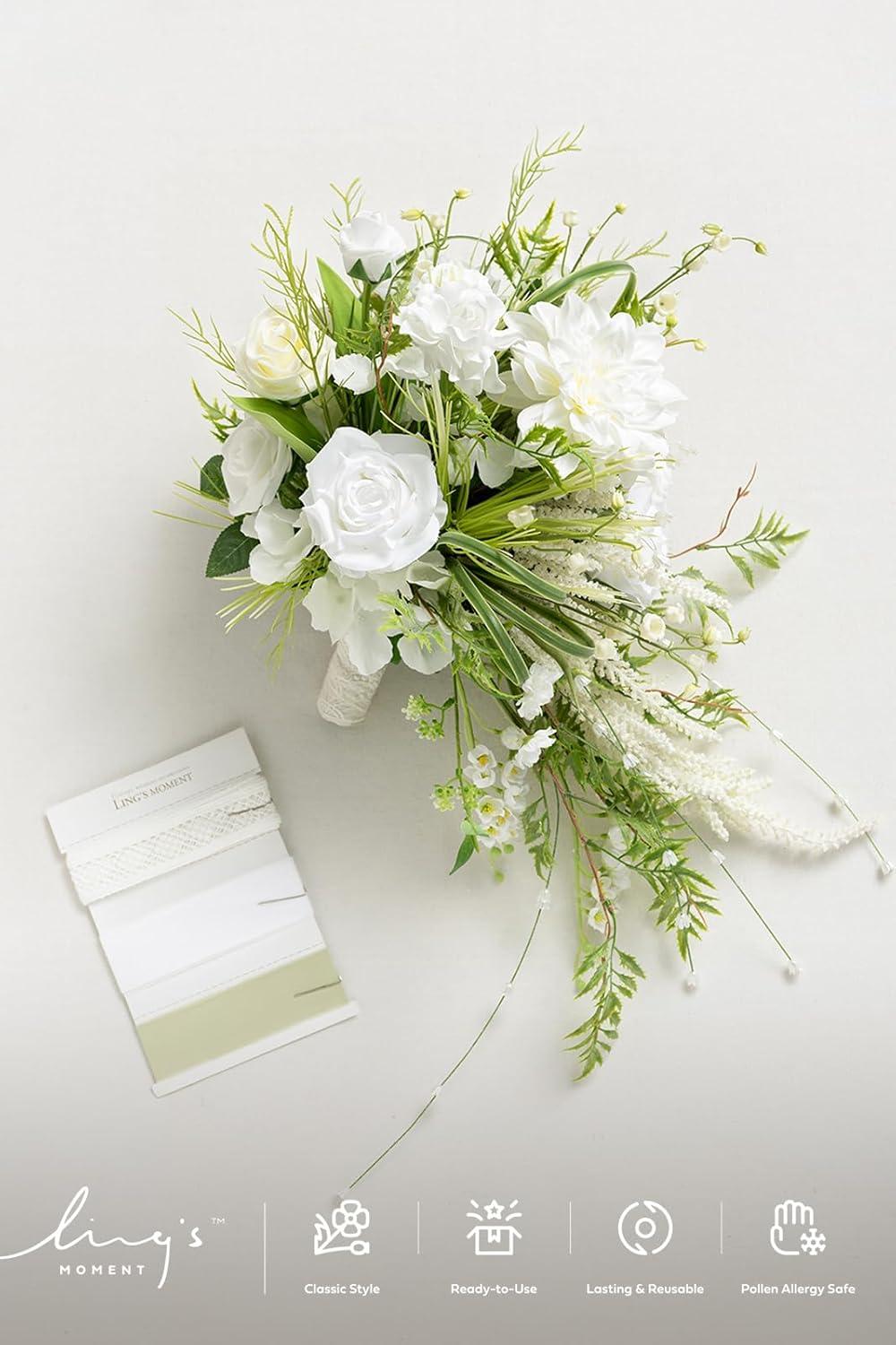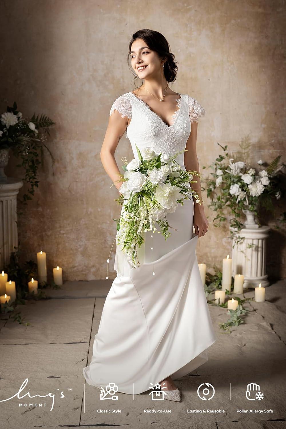 Ling’s moment Terracotta Bridal Bouquet Cascading, Burnt Orange Wedding Bouquets for Bride, 13 Inch Bride Bouquets for Wedding Artificial Flowers Bouquets(Wht-natural Whites)