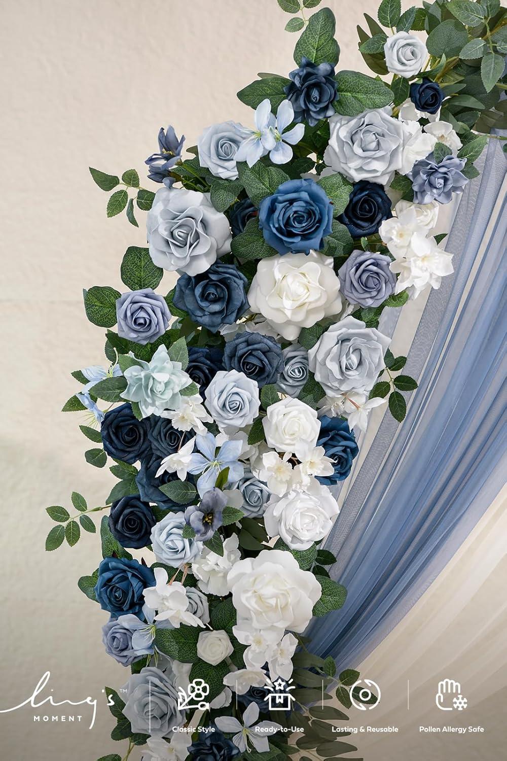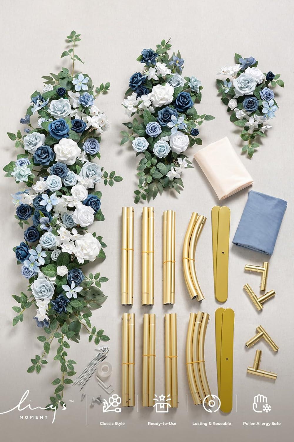 Ling’s Moment Wedding Arch Backdrop Stand with Flowers – 7.2FT, 6FT Set of 2 Metal Arch Frame with Drape for Ceremony Decor – Artificial Floral Birthday Party, Bridal Shower, Terracotta Orange(Blu-dusty Blue & Navy)