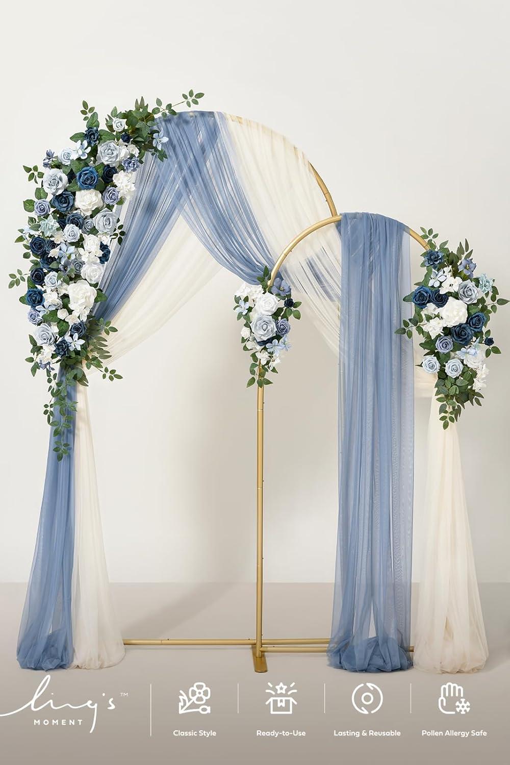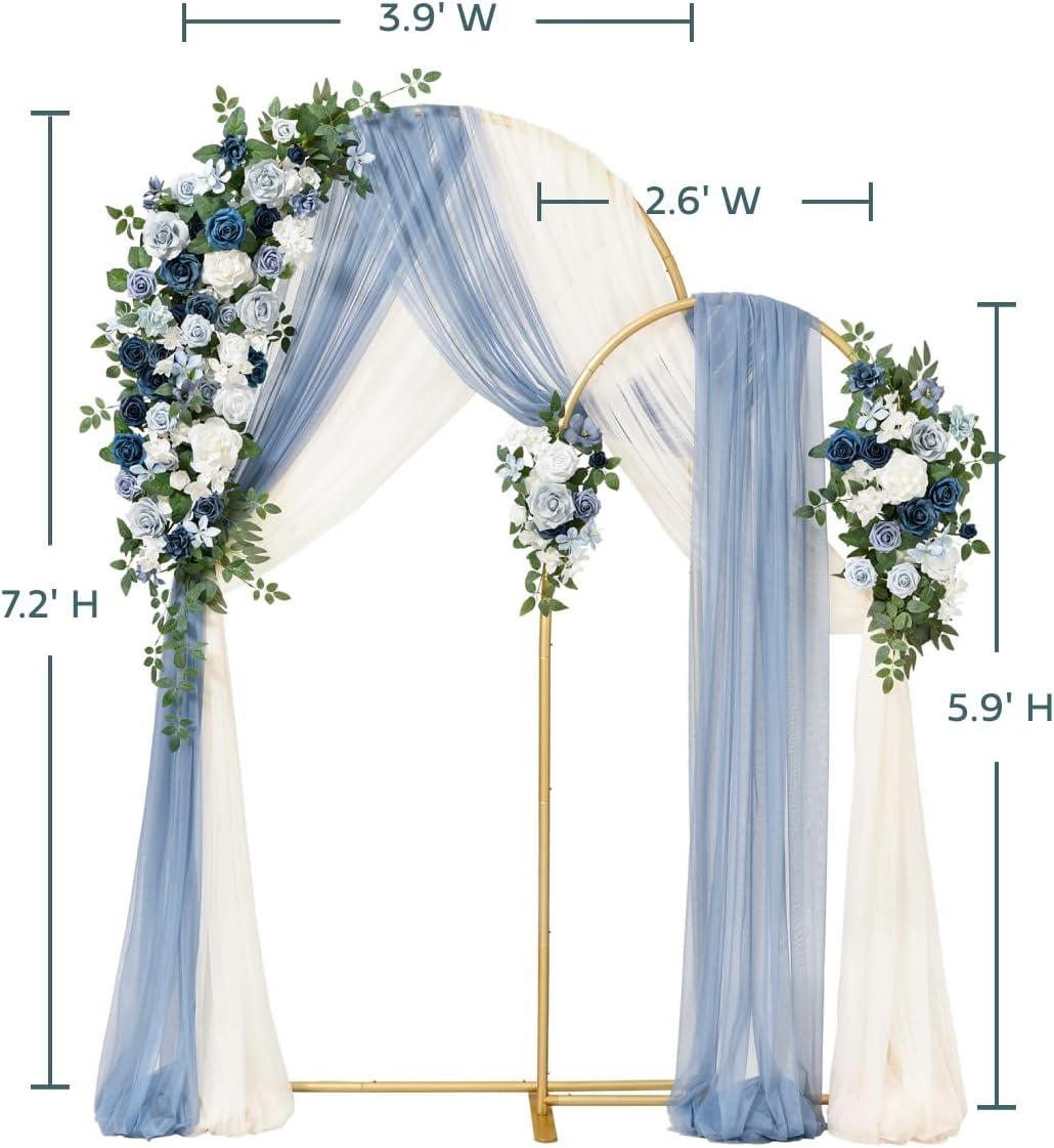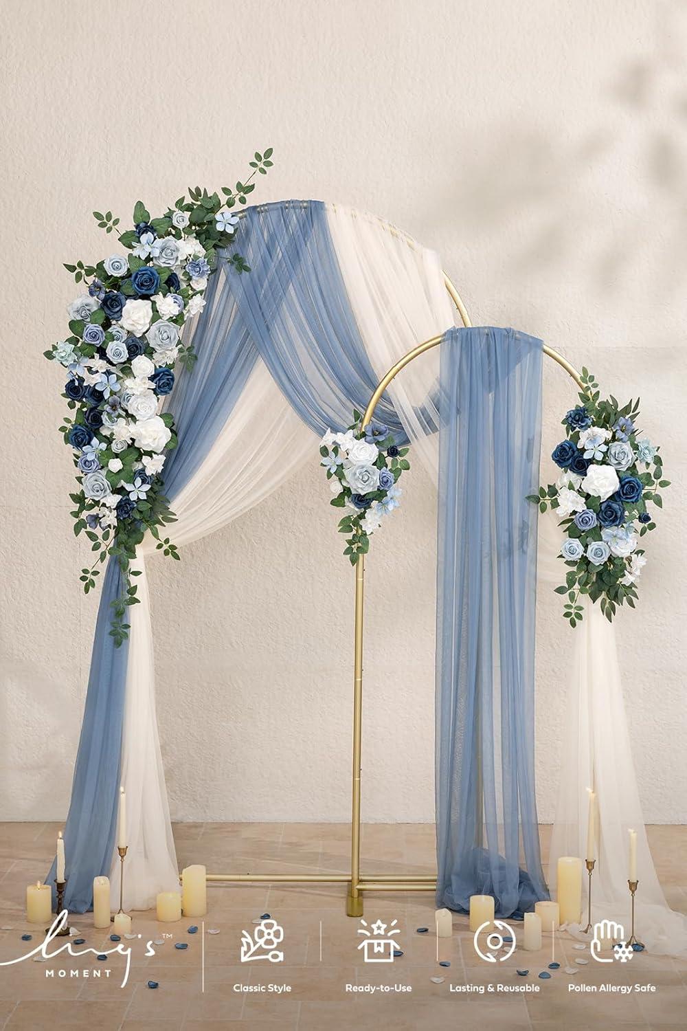 Ling's Moment Wedding Arch Backdrop Stand with Flowers - 7.2FT, 6FT Set of 2 Metal Arch Frame with Drape for Ceremony Decor - Artificial Floral Birthday Party, Bridal Shower, Terracotta Orange(Blu-dusty Blue & Navy)