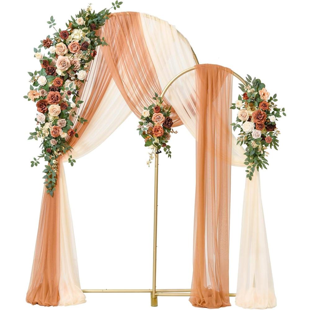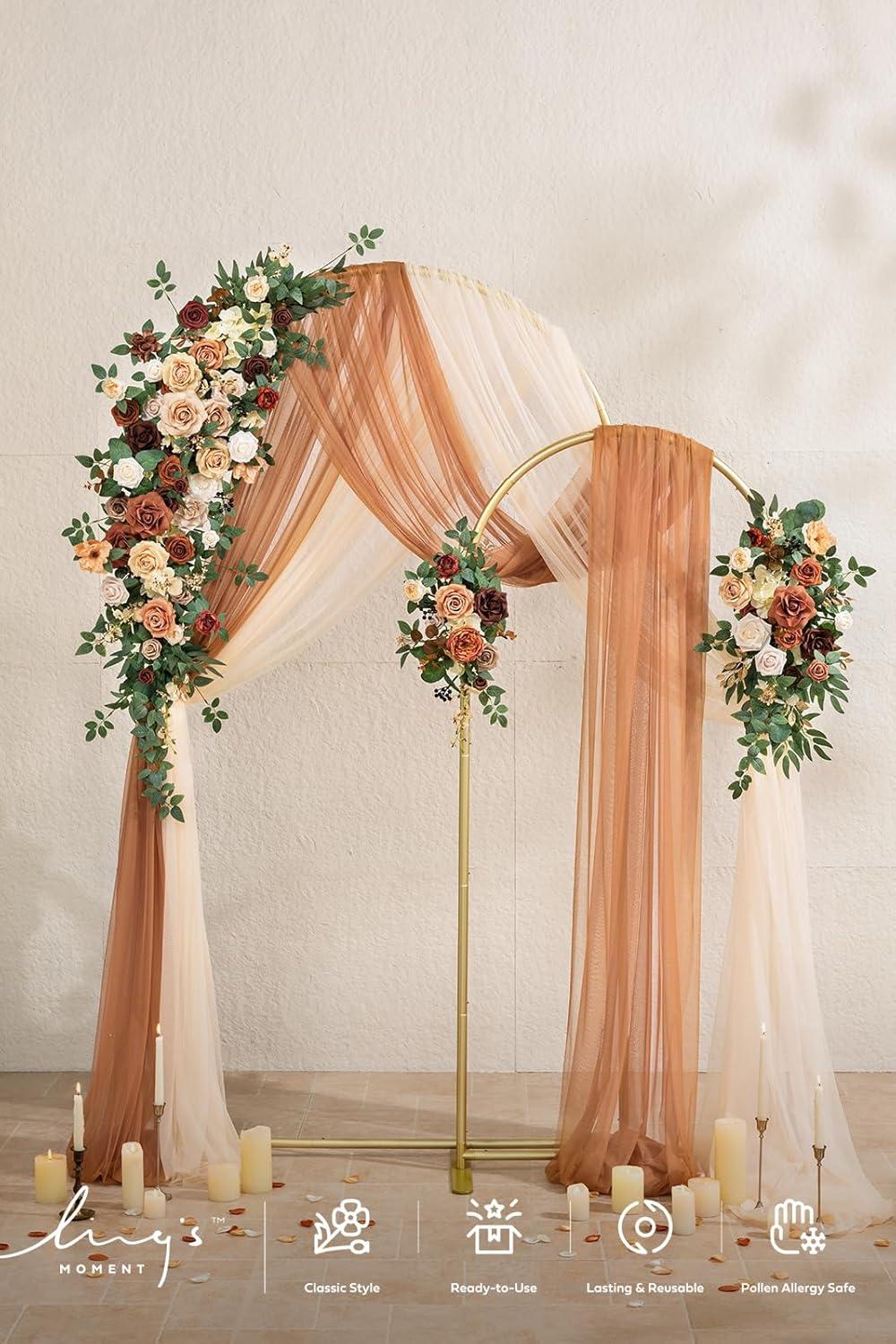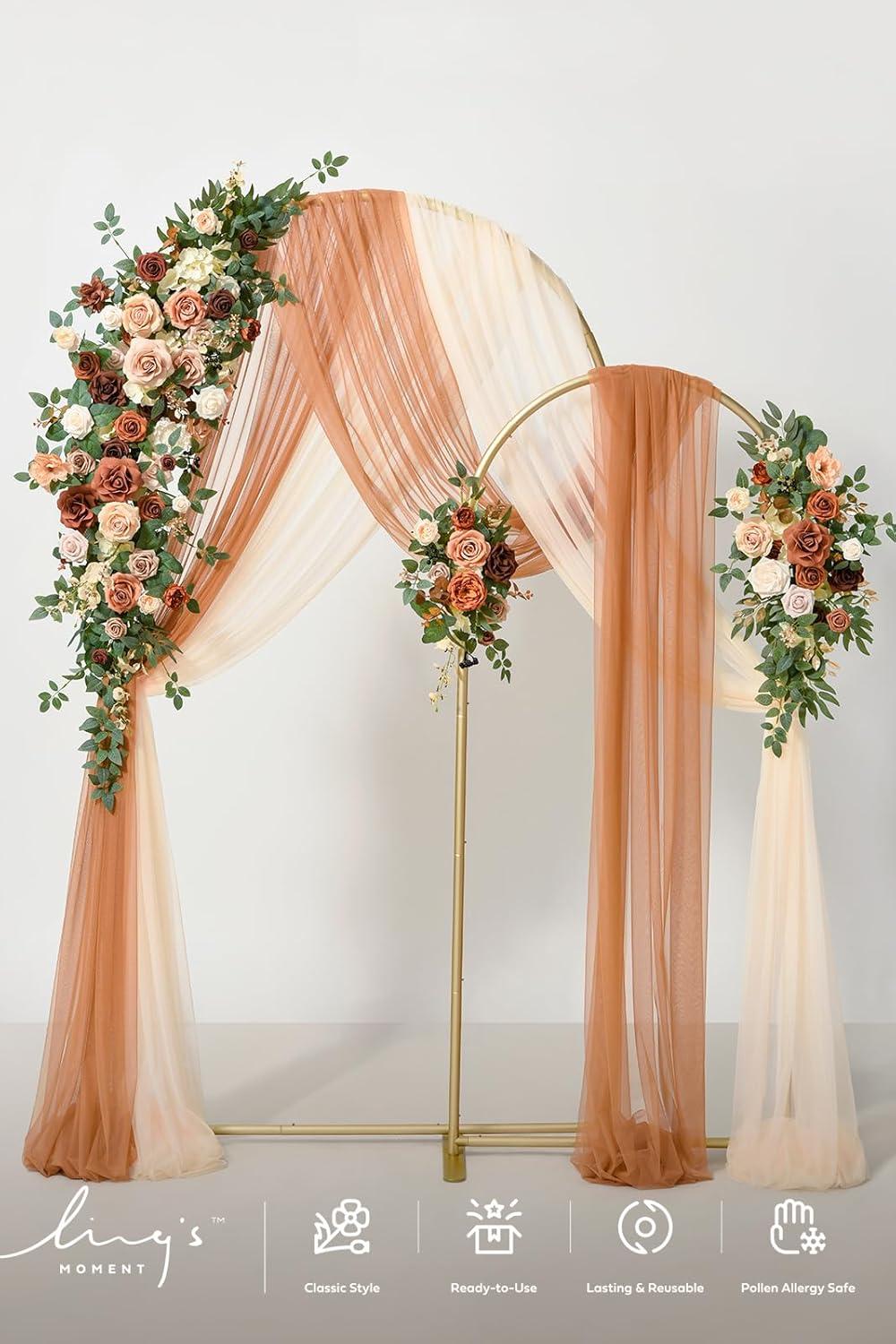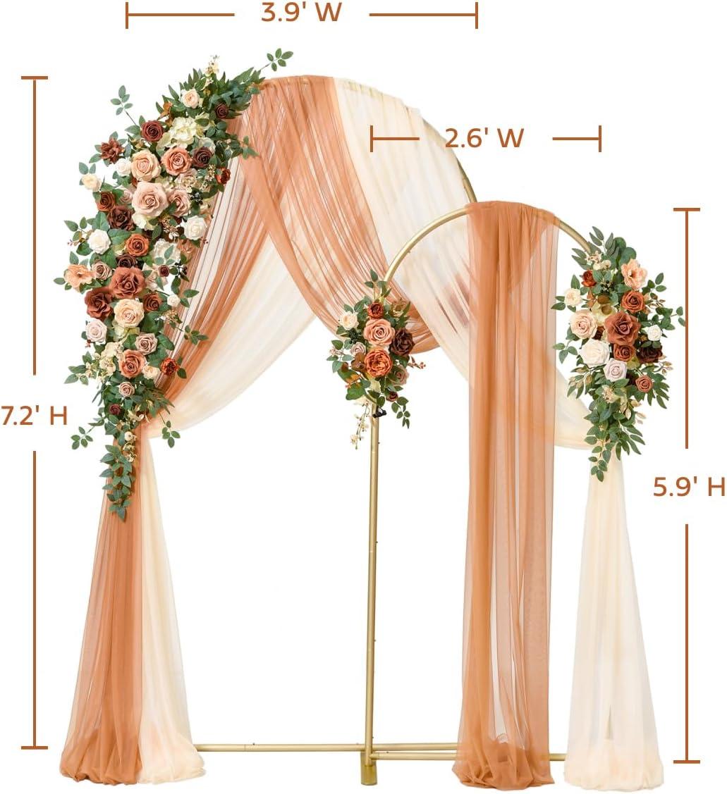 Ling’s Moment Wedding Arch Backdrop Stand with Flowers – 7.2FT, 6FT Set of 2 Metal Arch Frame with Drape for Ceremony Decor – Artificial Floral Birthday Party, Bridal Shower, Terracotta Orange(Or-rust & Sepia)