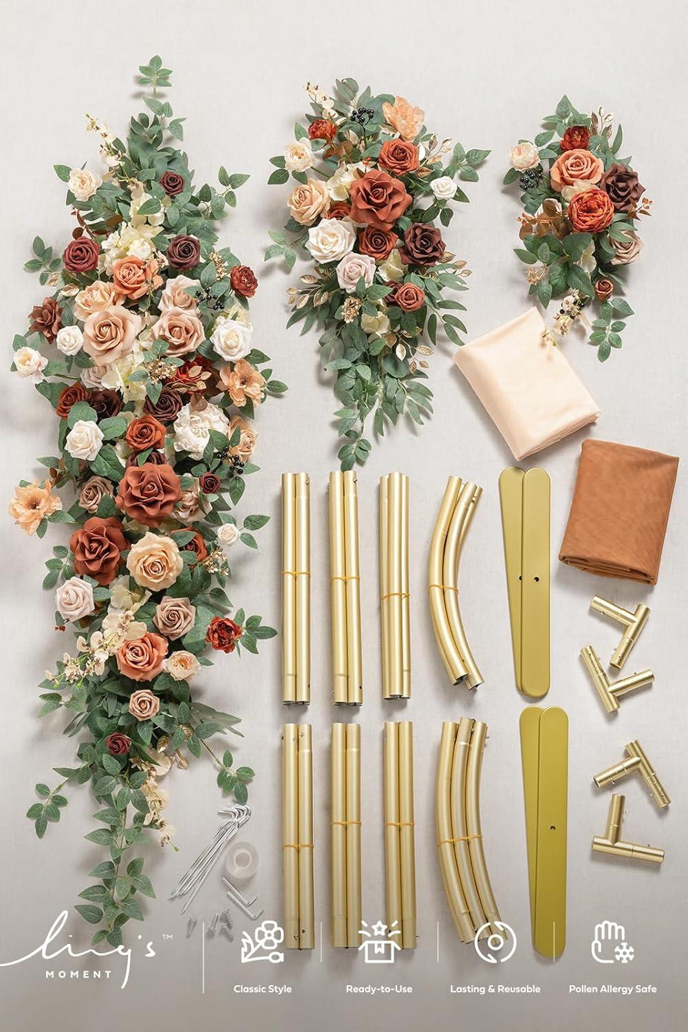 imageLings Moment Wedding Arch Backdrop Stand with Flowers  72FT 6FT Set of 2 Metal Arch Frame with Drape for Ceremony Decor  Artificial Floral Birthday Party Bridal Shower Terracotta OrangeOrsunset Terracotta