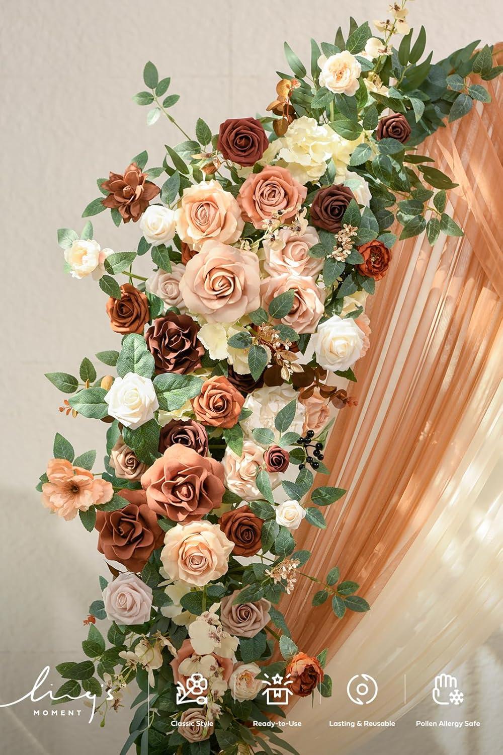 imageLings Moment Wedding Arch Backdrop Stand with Flowers  72FT 6FT Set of 2 Metal Arch Frame with Drape for Ceremony Decor  Artificial Floral Birthday Party Bridal Shower Terracotta OrangeOrrust  Sepia