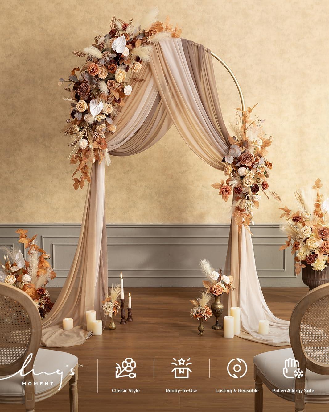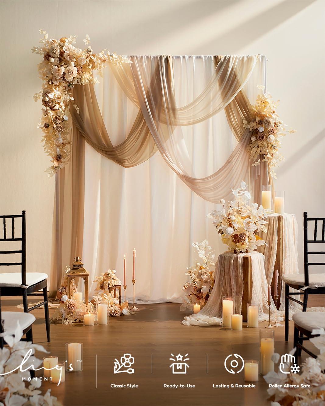 VERSATILE DECOR: Extend the use beyond your wedding ceremony decorations, the hanging draping fabrics can adorn stair railings, tables, curtains, and other elements of your home decor, adding elegance to various settings.