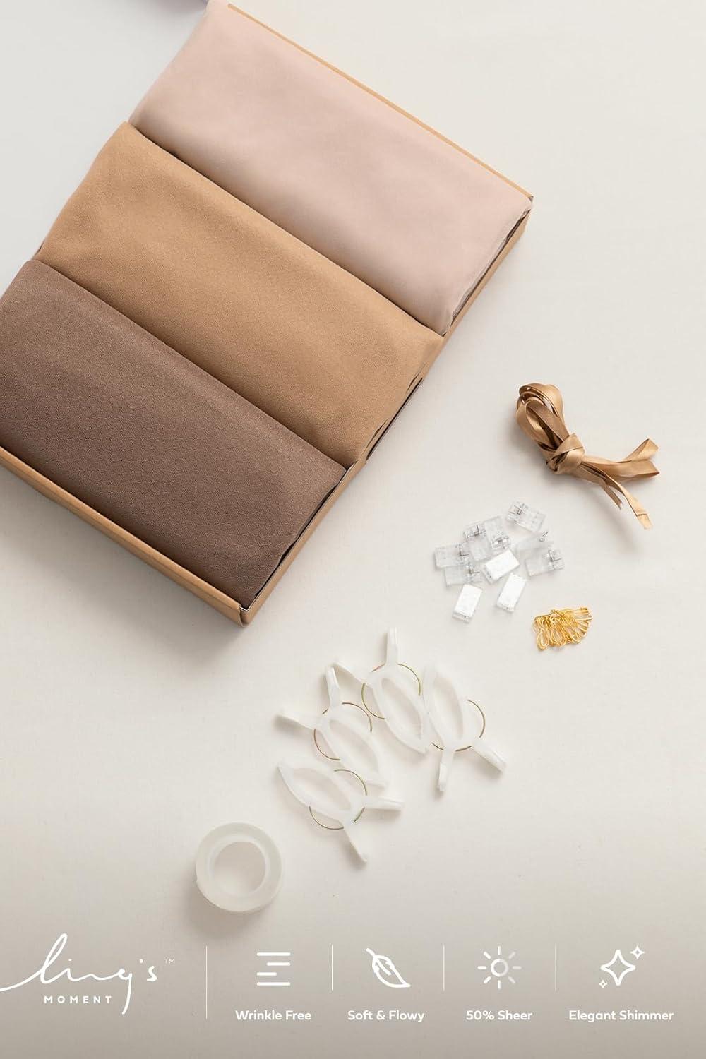 100% WRINKLE-FREE:Ling's decorative drapery fabrics con-texture are made of chiffon, polyester, and subtly sparkling yarns. This exclusive material ensures a 100% wrinkle-free look, offering a soft touch akin to silk, suitable for embellishing any space.