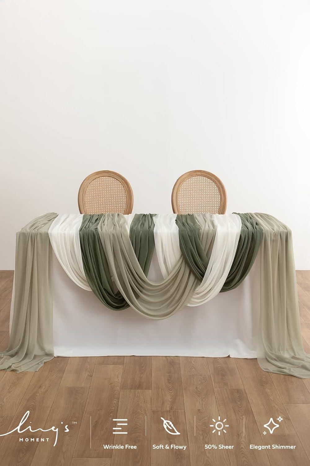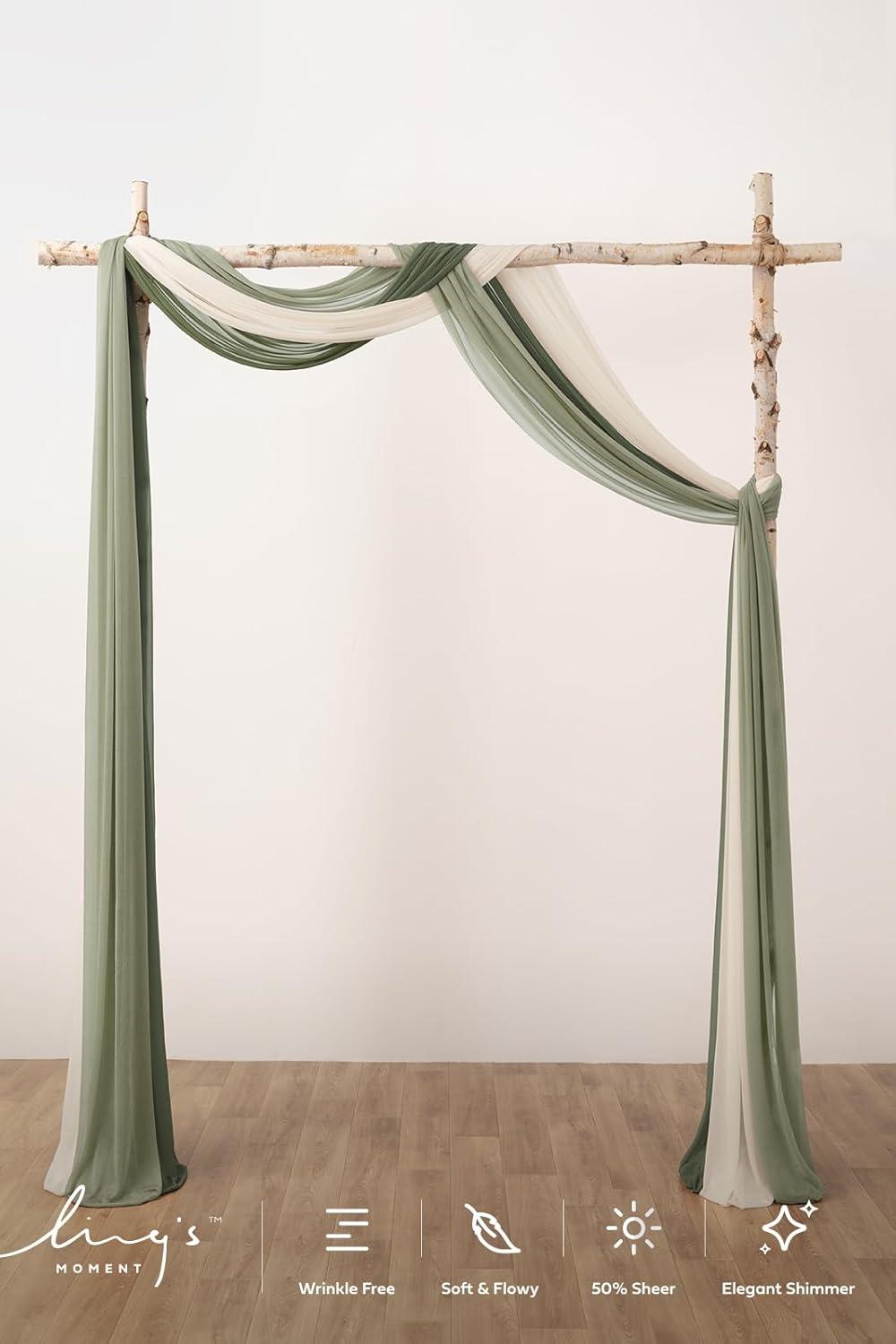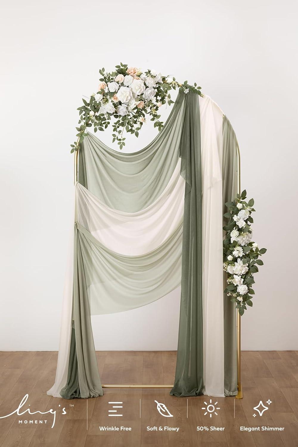 Ling’s Moment Wedding Arch Draping Fabric 3 Panels 20Ft Chiffon Fabric,Sheer Draping Fabic for Wedding Arrangement Ceremony Reception Backdrop Party Swag Home Decor (Sage Purple & Provence)(Grn-white & Sage)