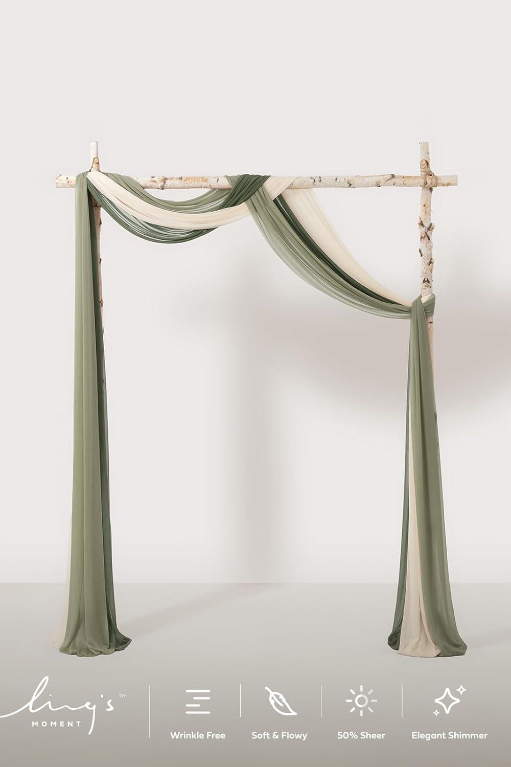 Ling’s Moment Wedding Arch Draping Fabric 3 Panels 20Ft Chiffon Fabric,Sheer Draping Fabic for Wedding Arrangement Ceremony Reception Backdrop Party Swag Home Decor (Sage Purple & Provence)(Ivy-cream & Nude & Ivory)