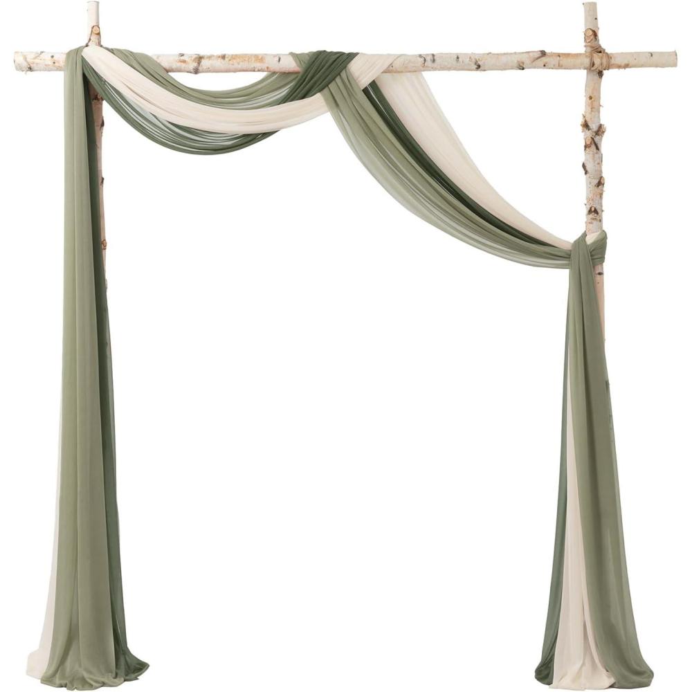 Ling's Moment Wedding Arch Draping Fabric 3 Panels 20Ft Chiffon Fabric,Sheer Draping Fabic for Wedding Arrangement Ceremony Reception Backdrop Party Swag Home Decor (Sage Purple & Provence)(Grn-white & Sage)