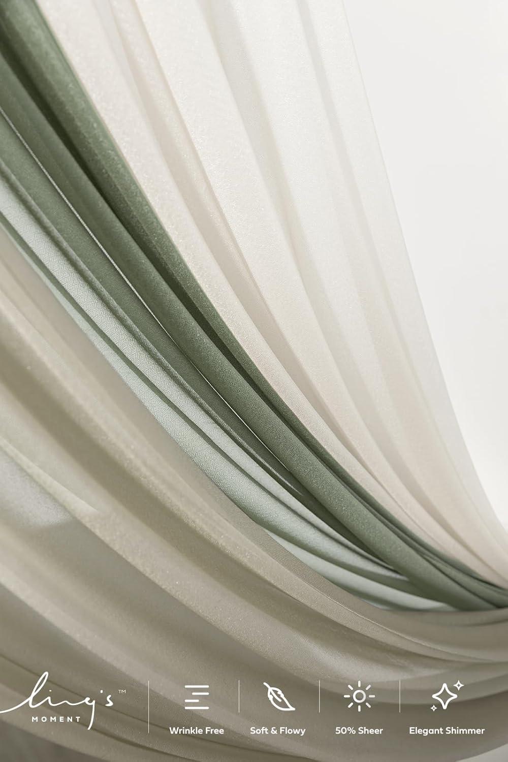Ling’s moment Wedding Arch Draping Fabric 3 Panels 20Ft Purple Chiffon Fabric,Sheer Hanging Drapes Arrangement for Wedding Ceremony Backdrop Party Swag Home Decor (Lilac & Gold)(Grn-white & Sage)