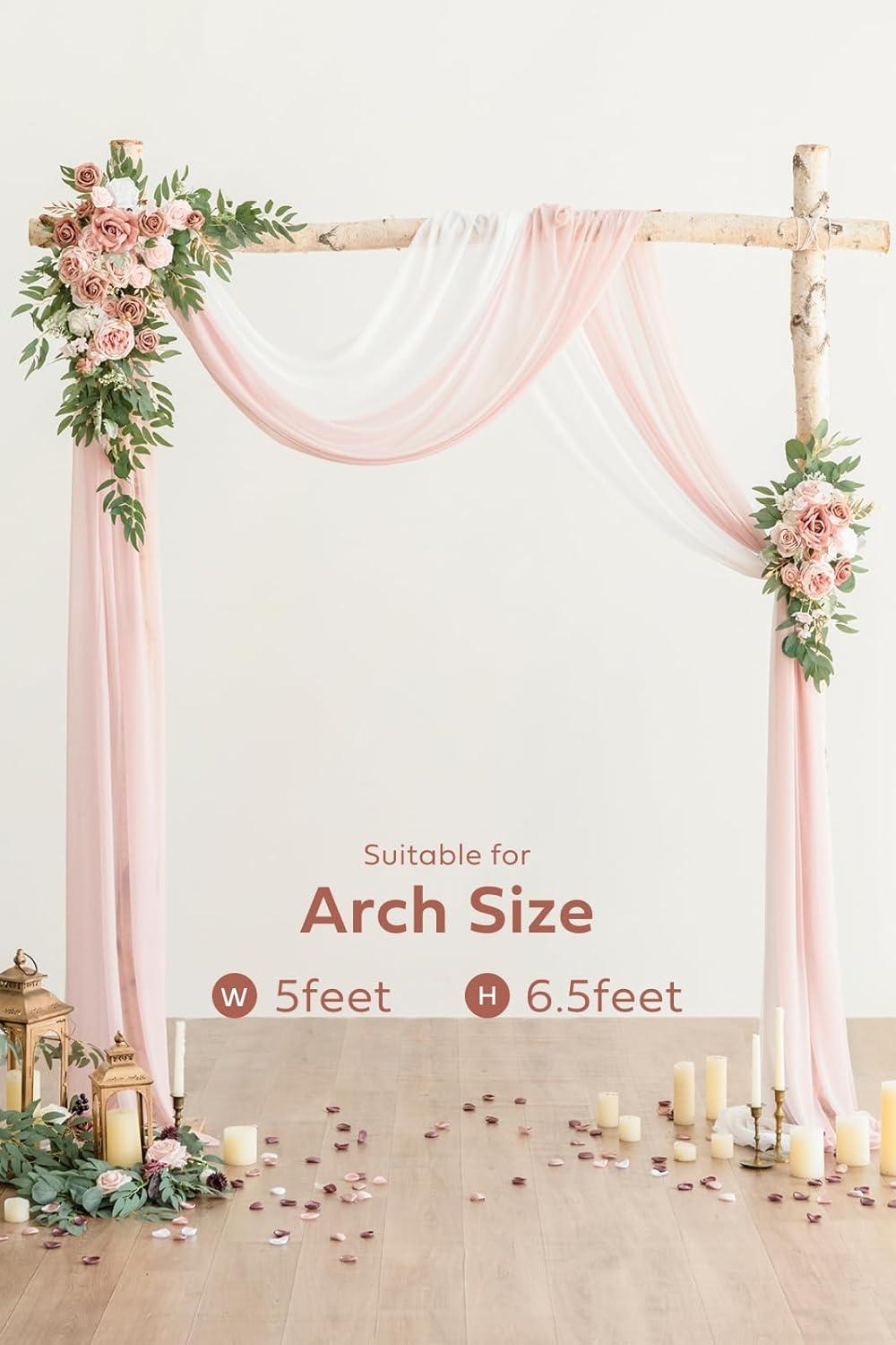 FIT ON DECOR: 30″ W x 20ft L drape tailored for decorating 6.5ft W x 6.5ft H arch stand as photography show. 3 panels creating a beautifully layered effect. Suitable for decorating any wedding arch, like canopy, arbor, or altar.