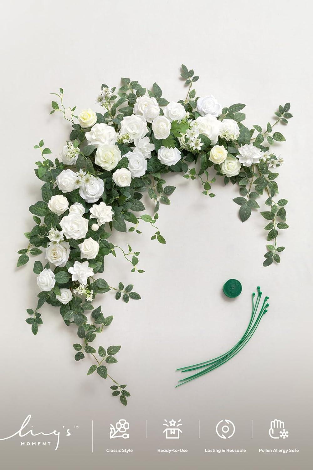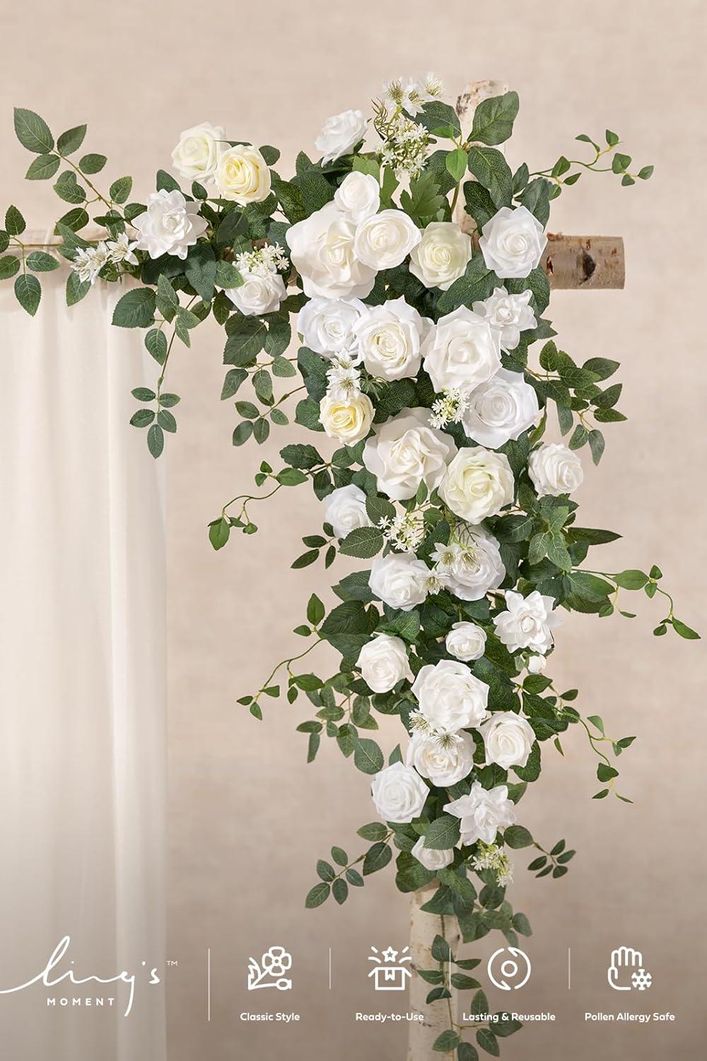 Ling’s moment Wedding Arch Flowers – 6.5FT Floral Garland for Ceremony Arbor Backdrop Decoration – Artificial Rose Floral Swag for Sweetheart Table Birthday Party, Baby Shower, Masala Red(Wht-Lily White)