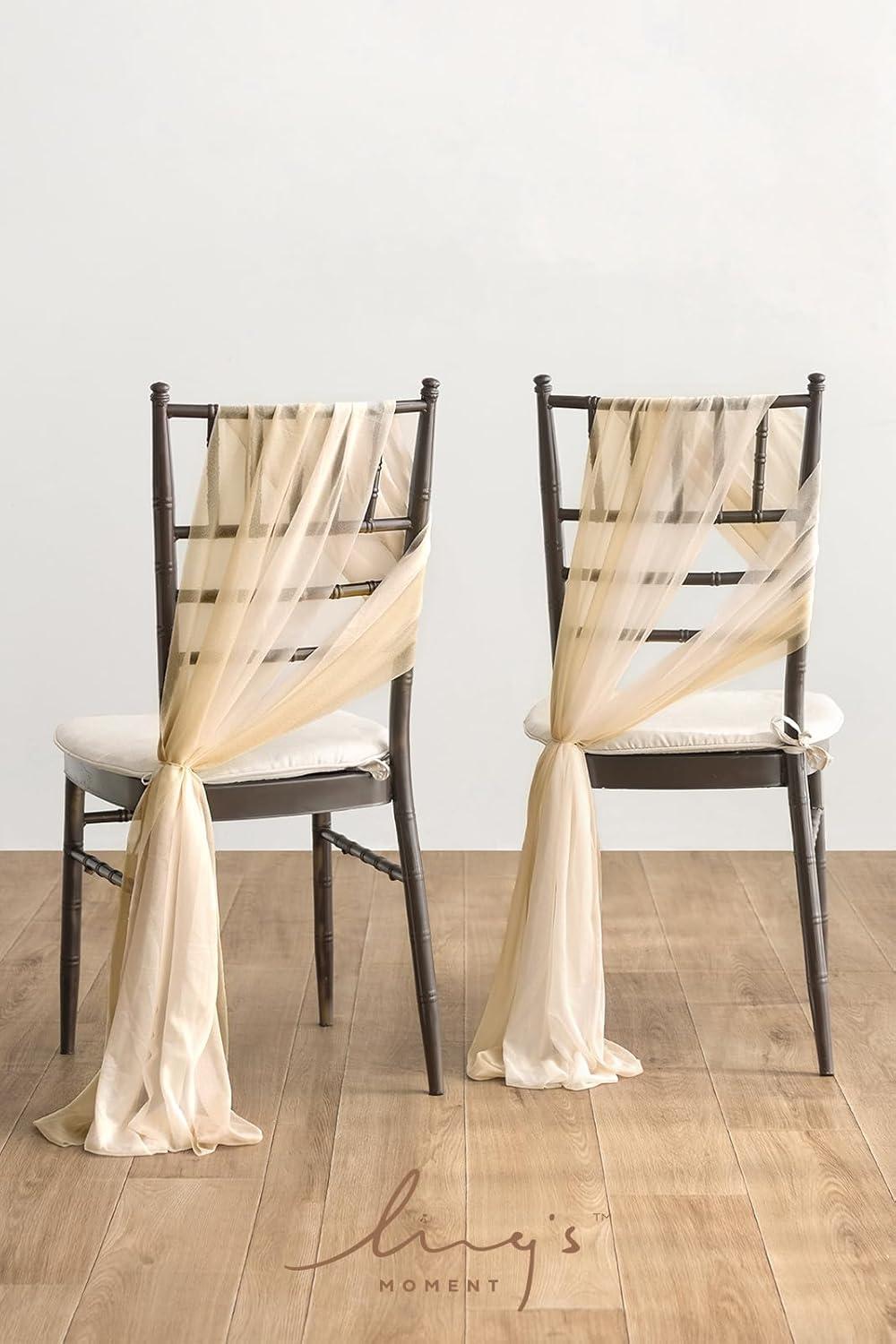 Ling’s Moment Wedding Chiffon Chair Sashes Cover Aisle Decorations Draping Fabric Wrinkle-Free with Tie 16 Pcs Burgundy for Party Ceremony Reception Floral Arrangement Banquet Outdoor Decor(Cappuccino & Brown)