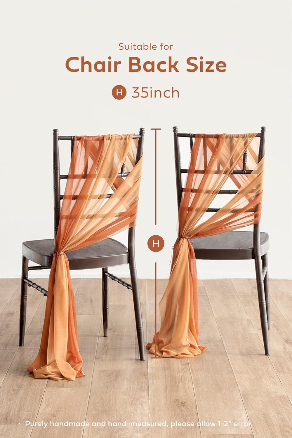 Ling's Moment Wedding Chiffon Chair Sashes Cover Aisle Decorations Draping Fabric Wrinkle-Free with Tie 16 Pcs Burgundy for Party Ceremony Reception Floral Arrangement Banquet Outdoor Decor(Or-burnt Orange & Orange Clay)
