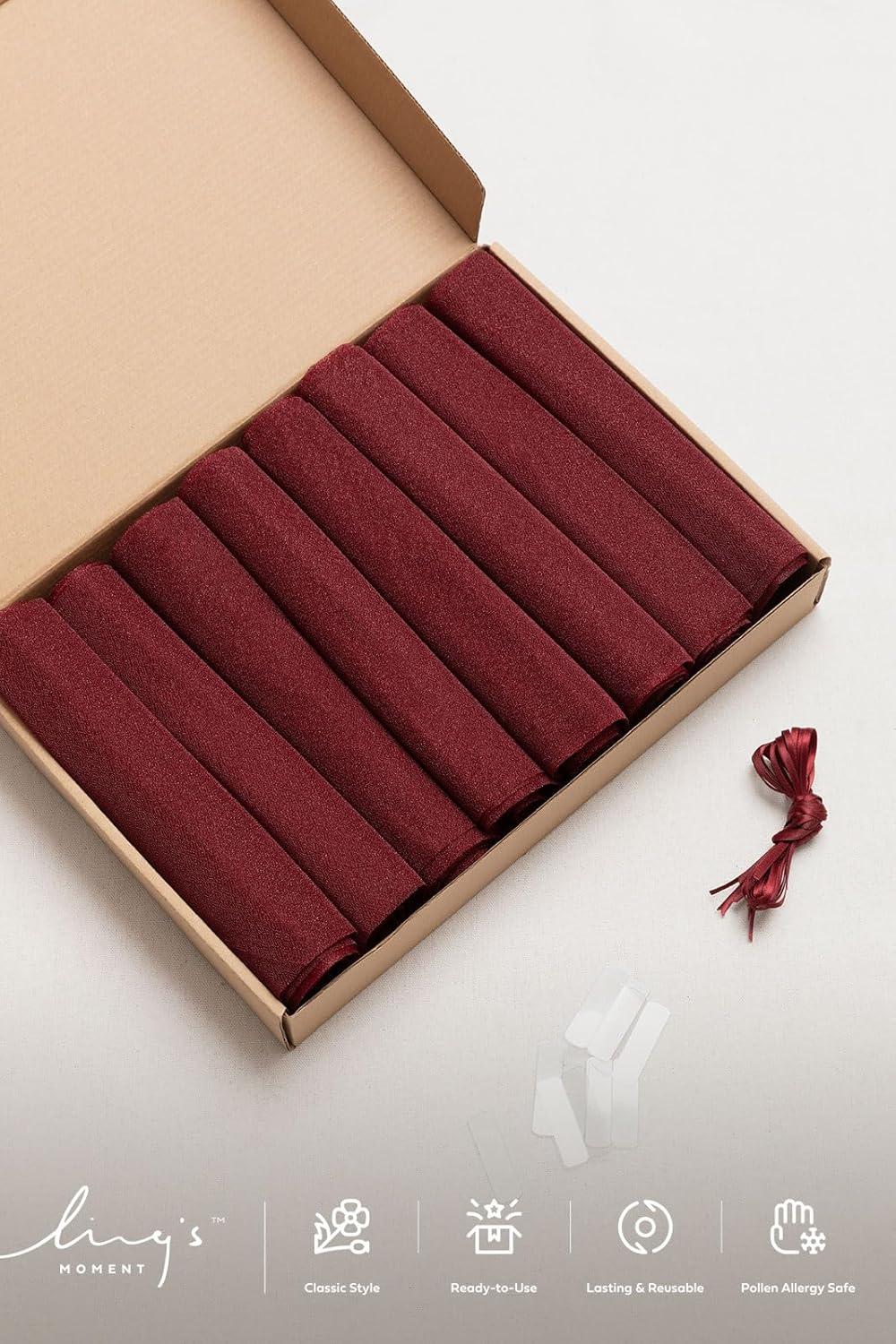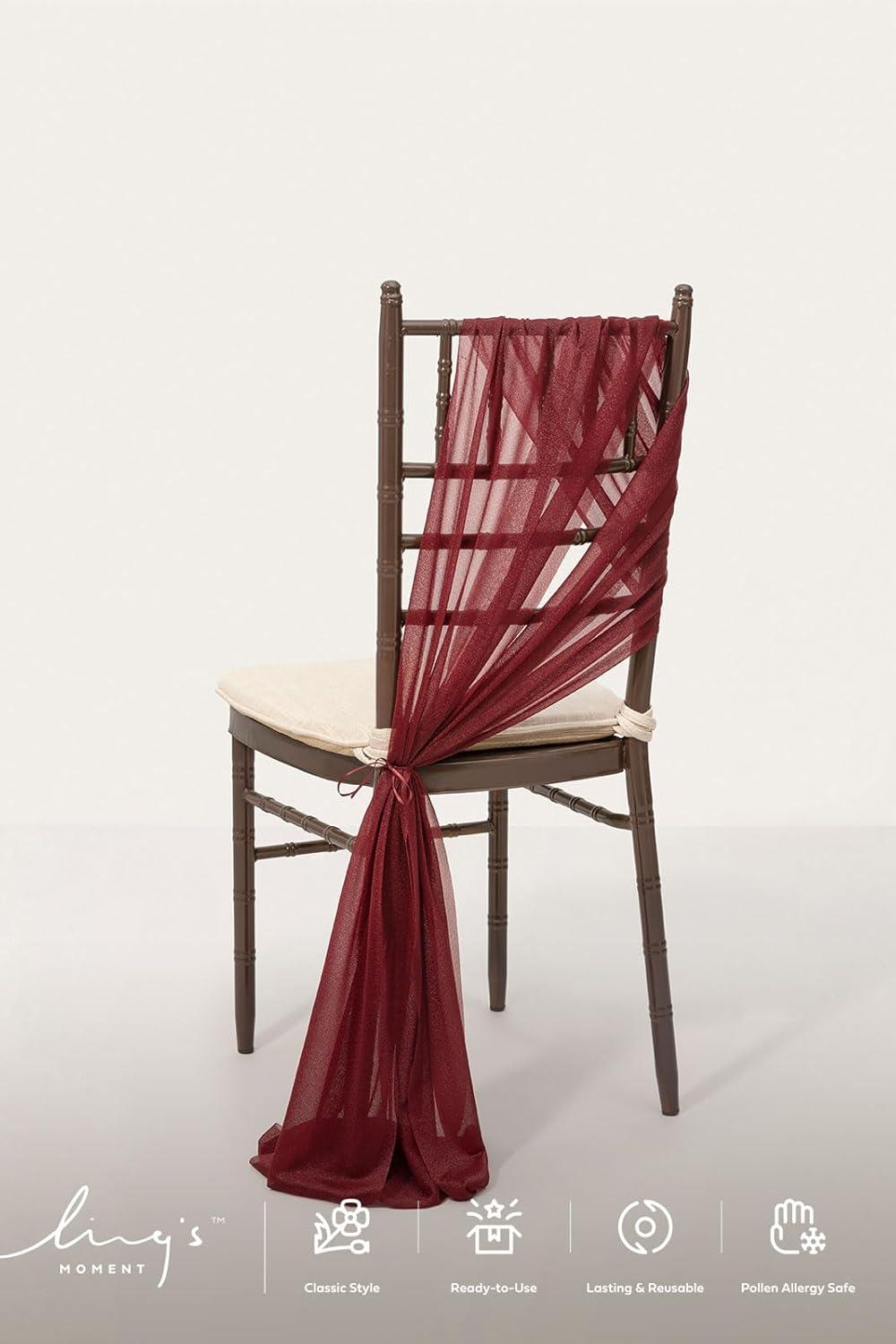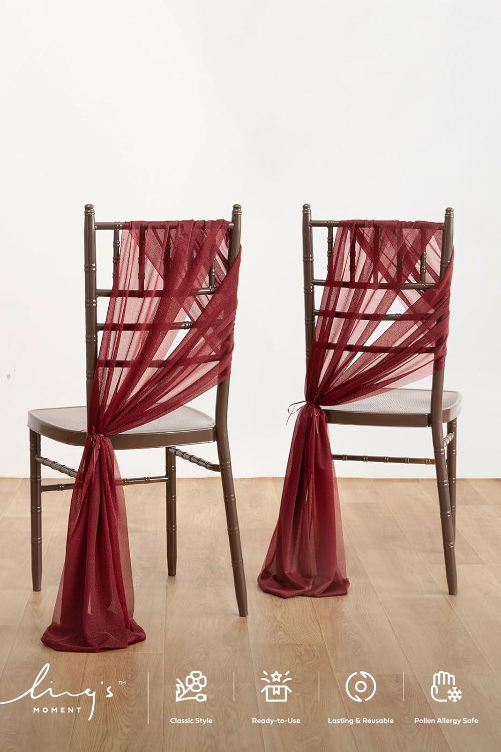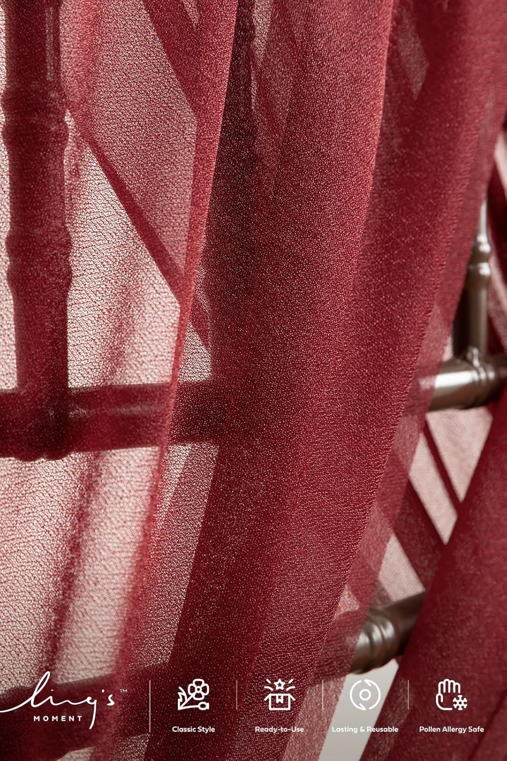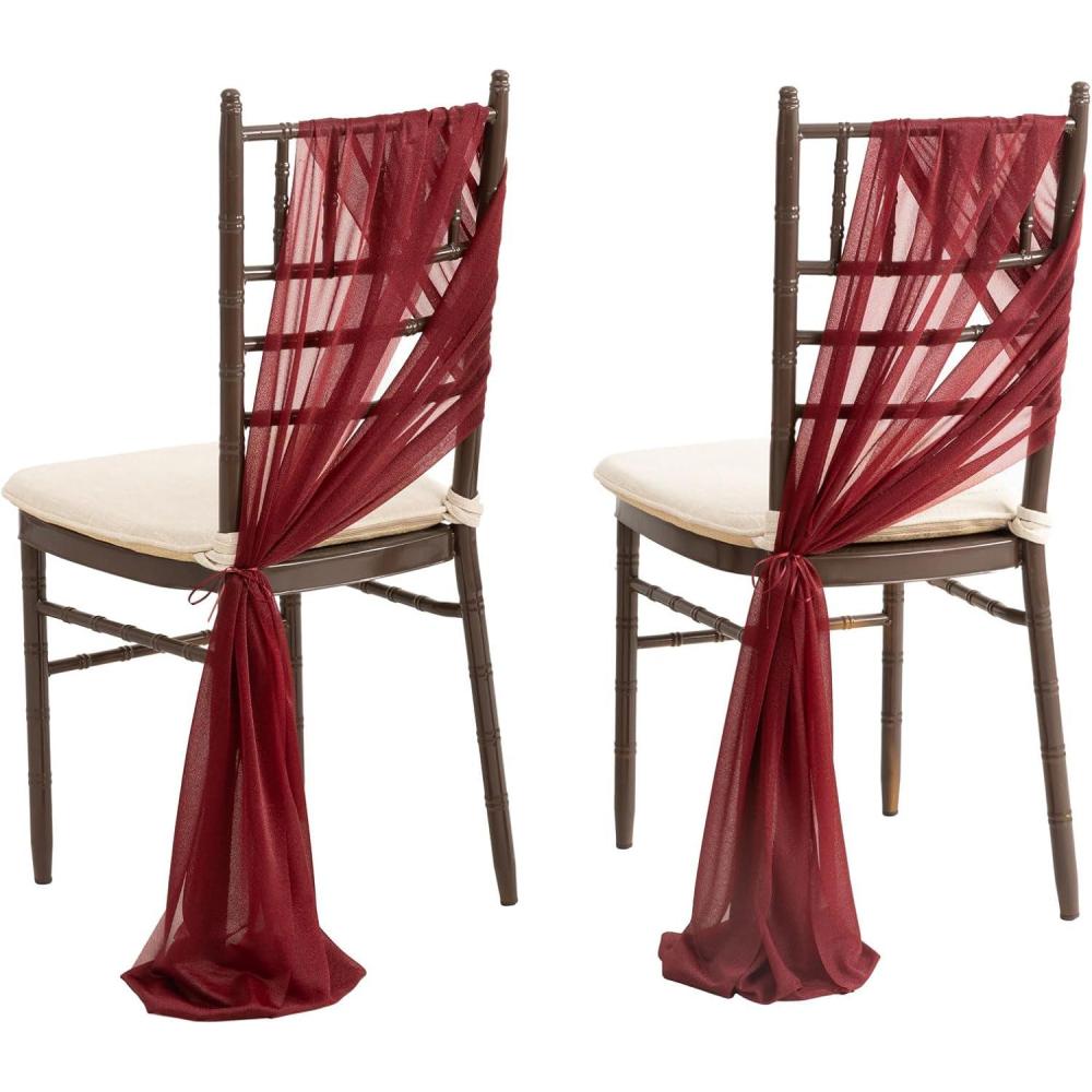 Ling's Moment Wedding Chiffon Chair Sashes Cover Aisle Decorations Draping Fabric Wrinkle-Free with Tie 16 Pcs Burgundy for Party Ceremony Reception Floral Arrangement Banquet Outdoor Decor(Red-burgundy)