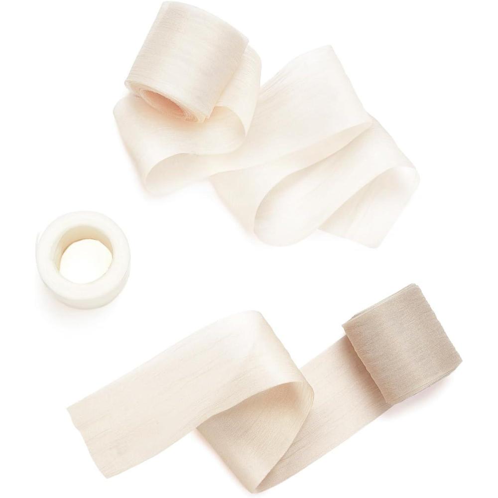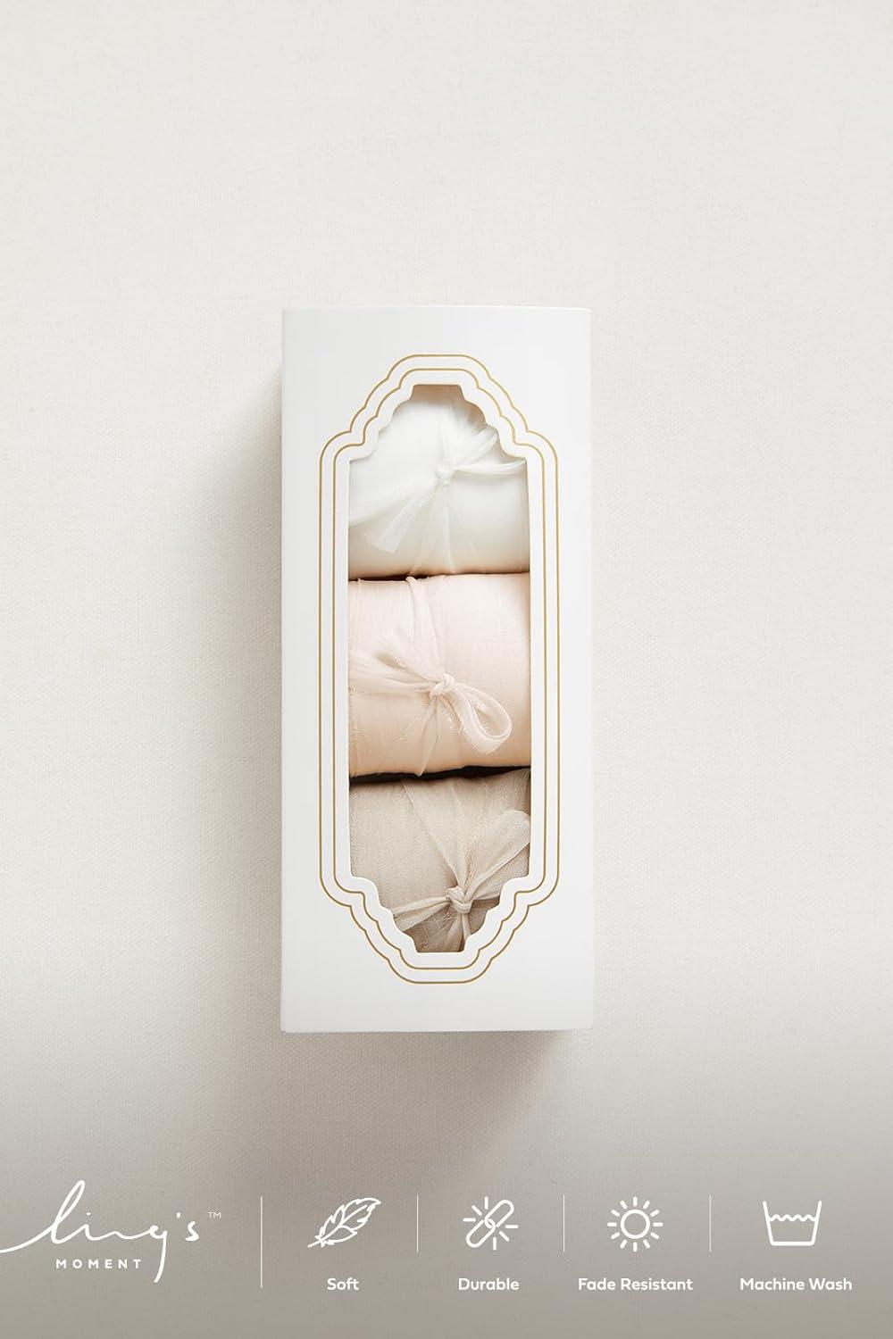 Ling’s Moment White Ribbon 1.6 Inch x 3 Rolls Total 20Yd Cream Craft Fabric Silk Satin Ribbons for Gifts Wrapping, Wedding Invitations, Bridal Bouquets, Decorations(Brn-Almond)